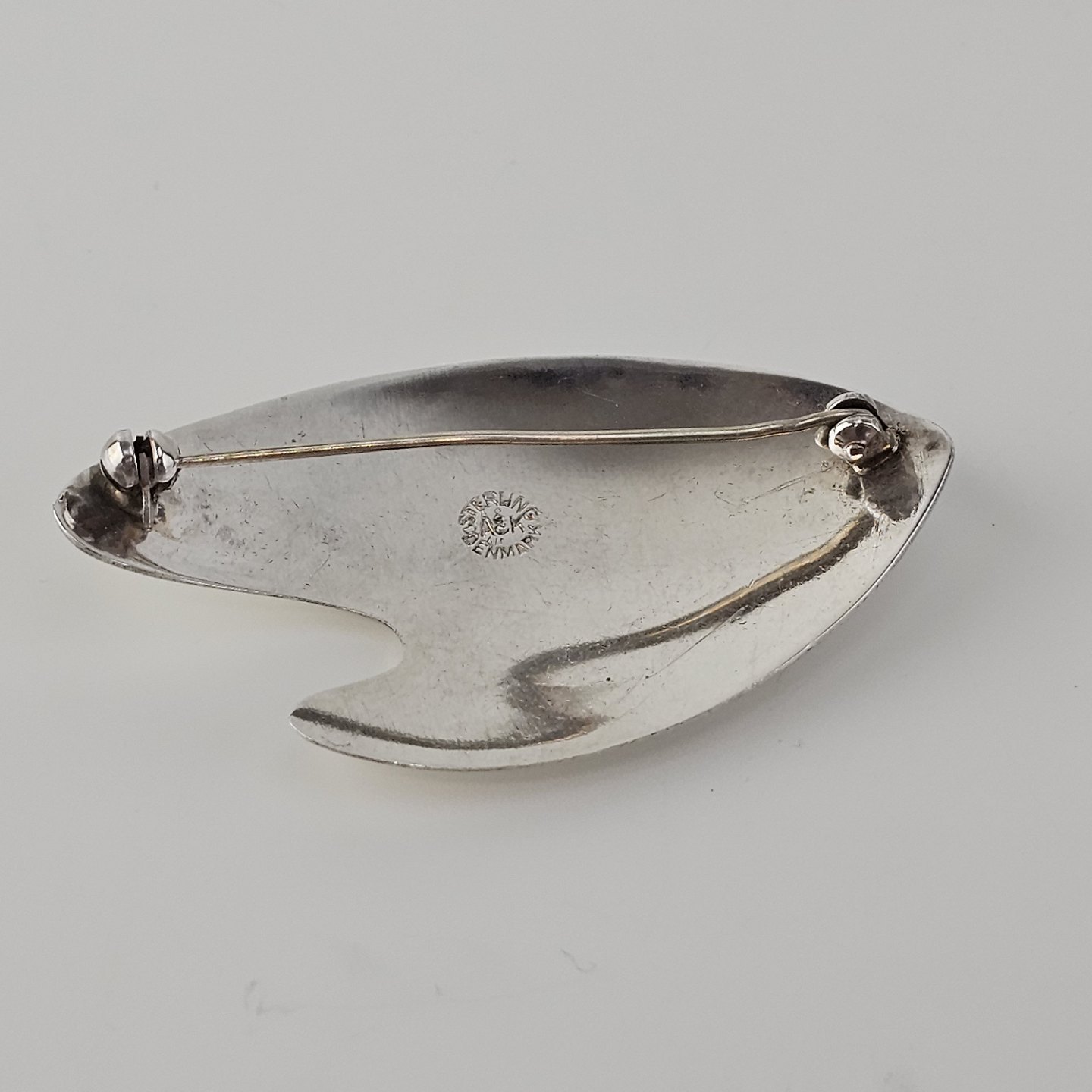 Broche i sterling sølv med motiv af et bladProducent Aare & Krogs (1949-1990)