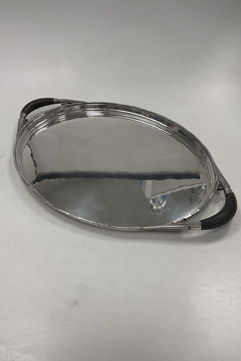 Georg Jensen Sterling Sølv Oval Cosmos Serveringsbakke med træhåndtag No. 251BDesignet af Johan Rohde.