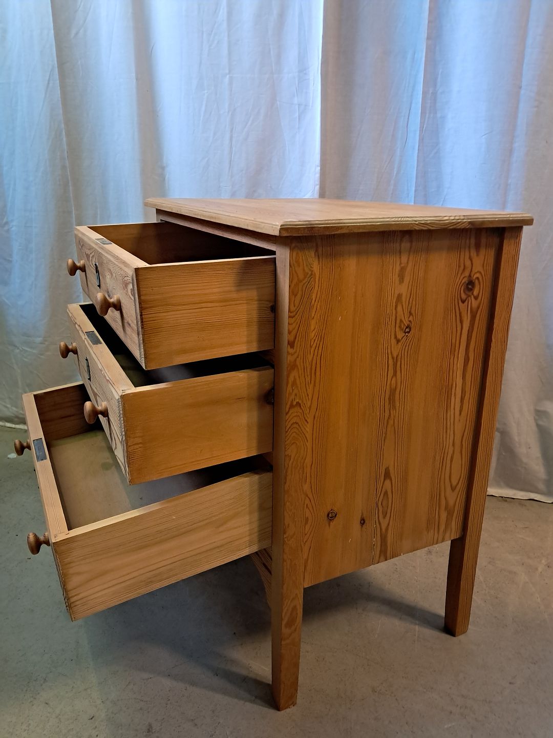 Kommode i masivt fyrretræ, fra 1930erne.Den har brugsspor.