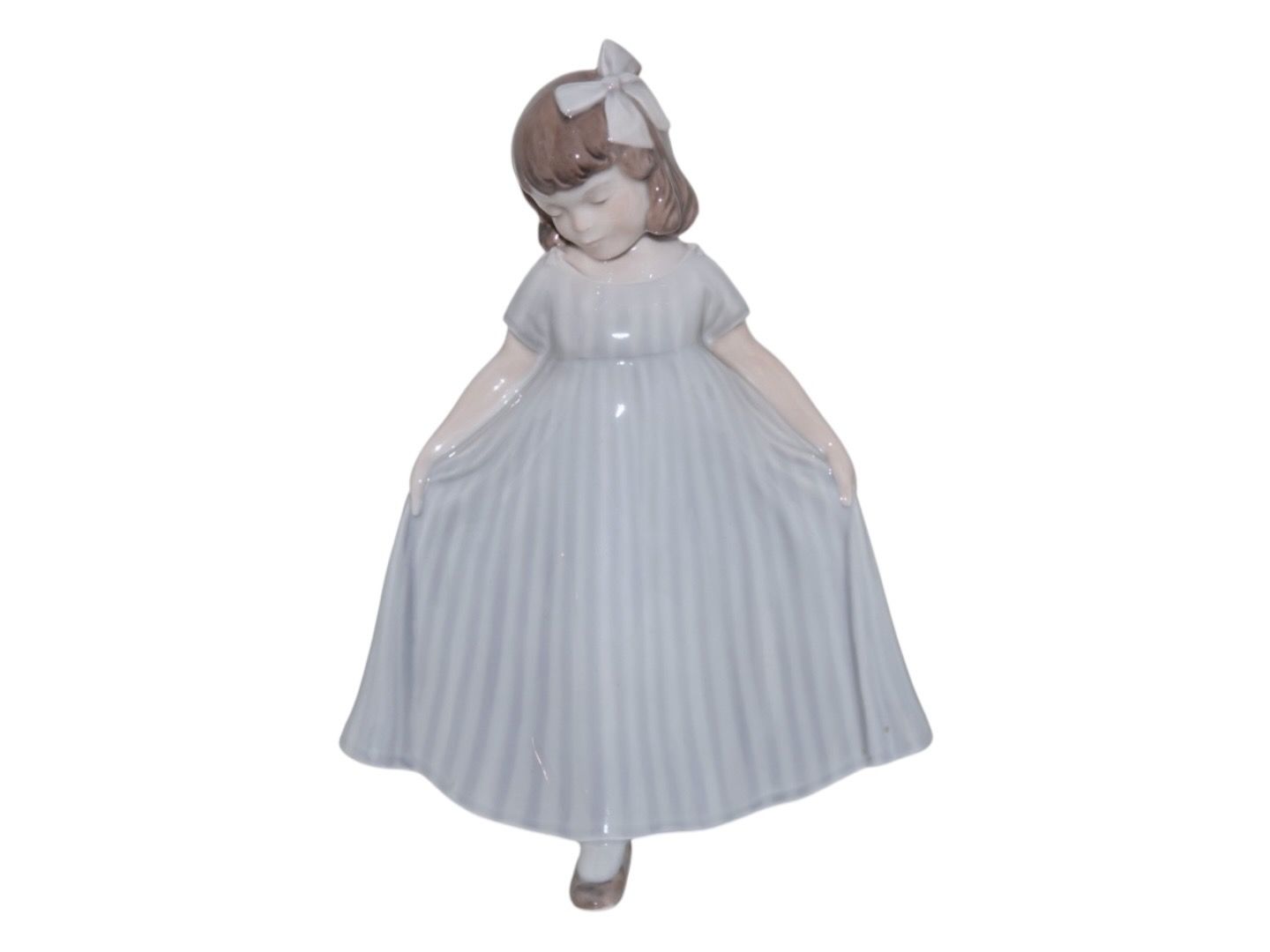 Royal Copenhagen figur af dansende pige i tidlig udgave med lyseblå kjole.Dekorationsnummer 2444.
