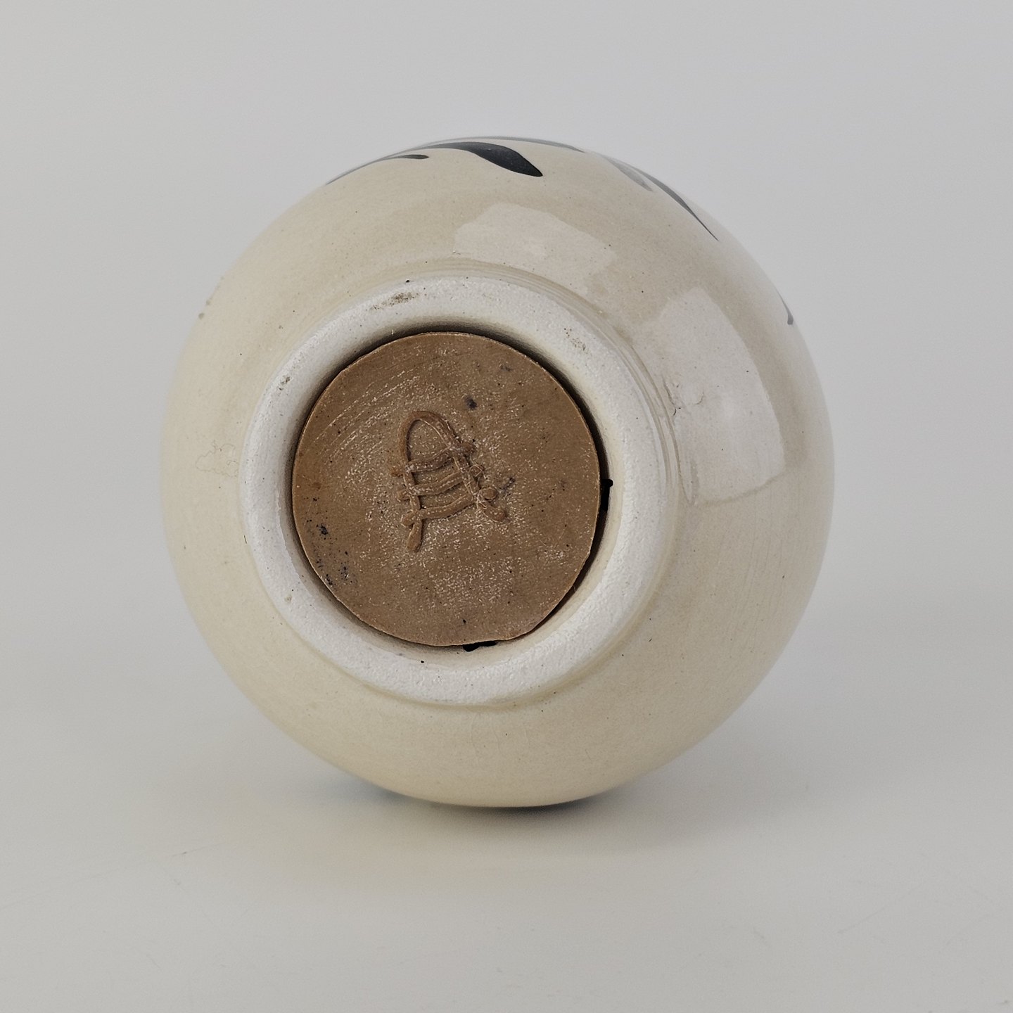 Råhvidt fajancestel i stelform E med dekoration af naturmotiver i sølv og sort farve.