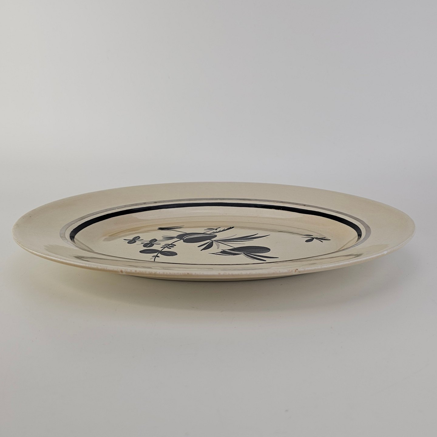 Ovalt fad i fajance fra stellet Dragsholm fremstillet i perioden 1934-1965.Formgiver Thorkild Olsen