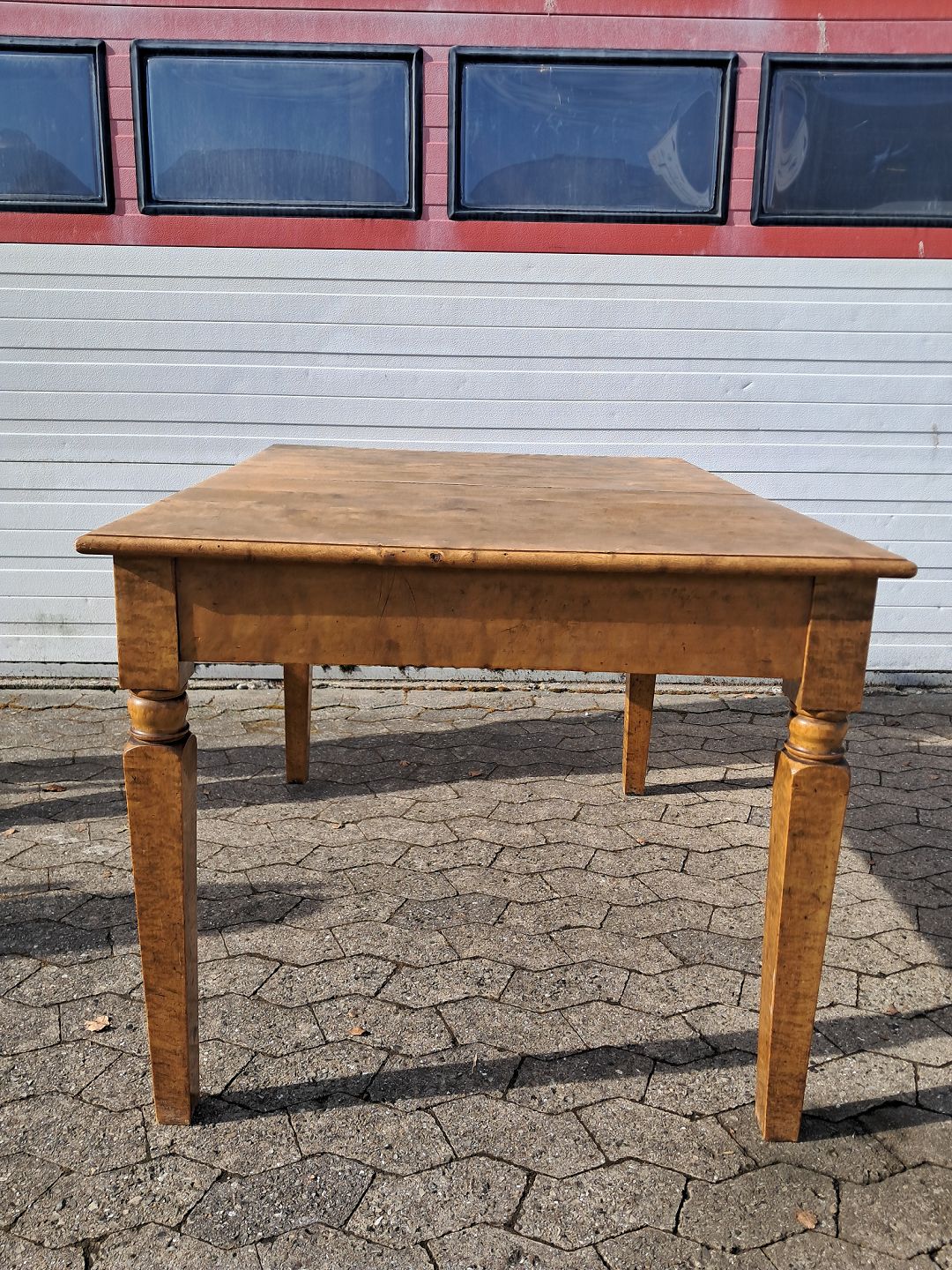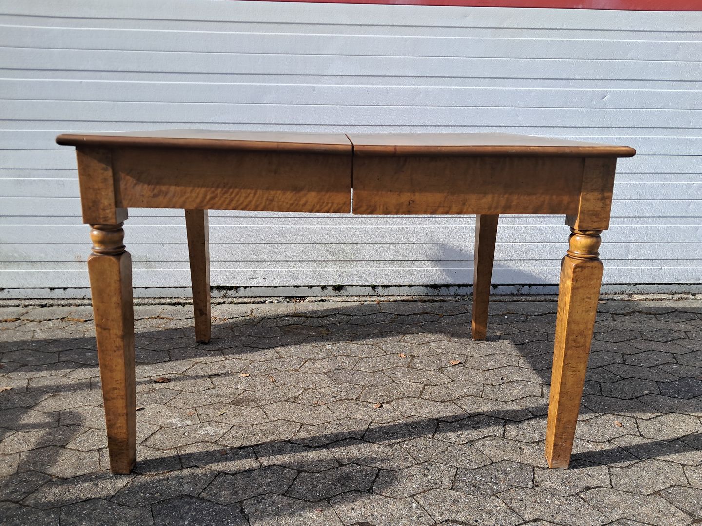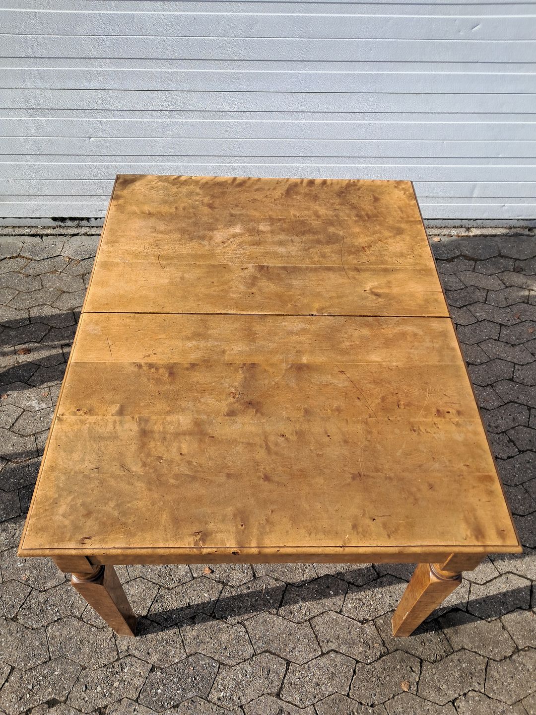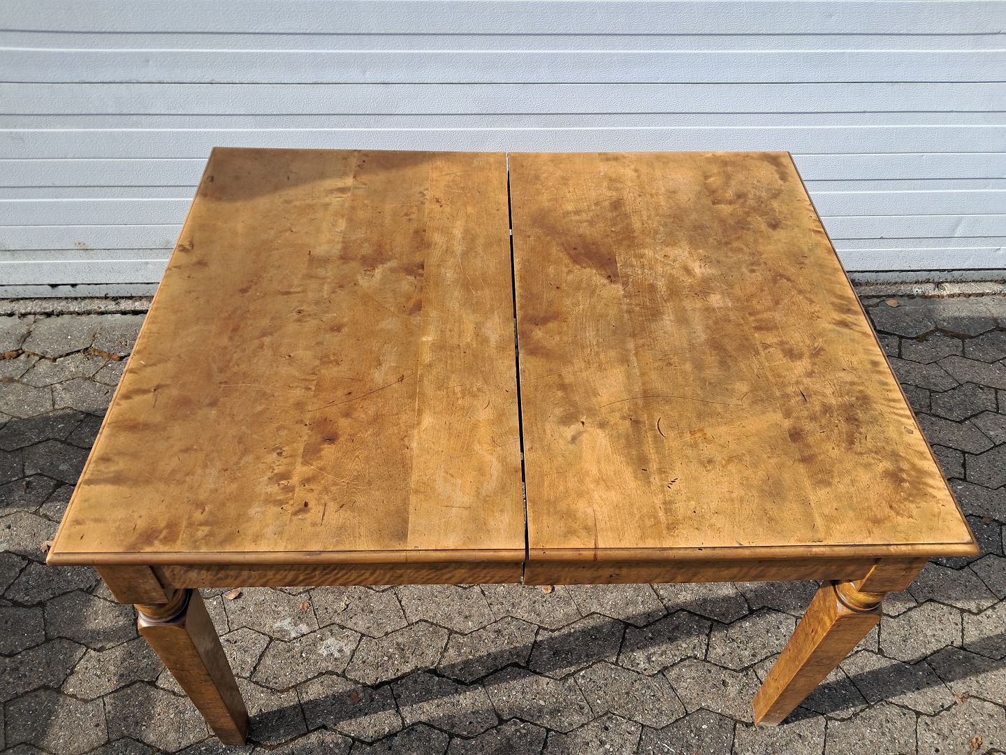 Spisebord i fineret birketræ, fra 1920erne.Det har brugsspor og udtrækket virker ikke.