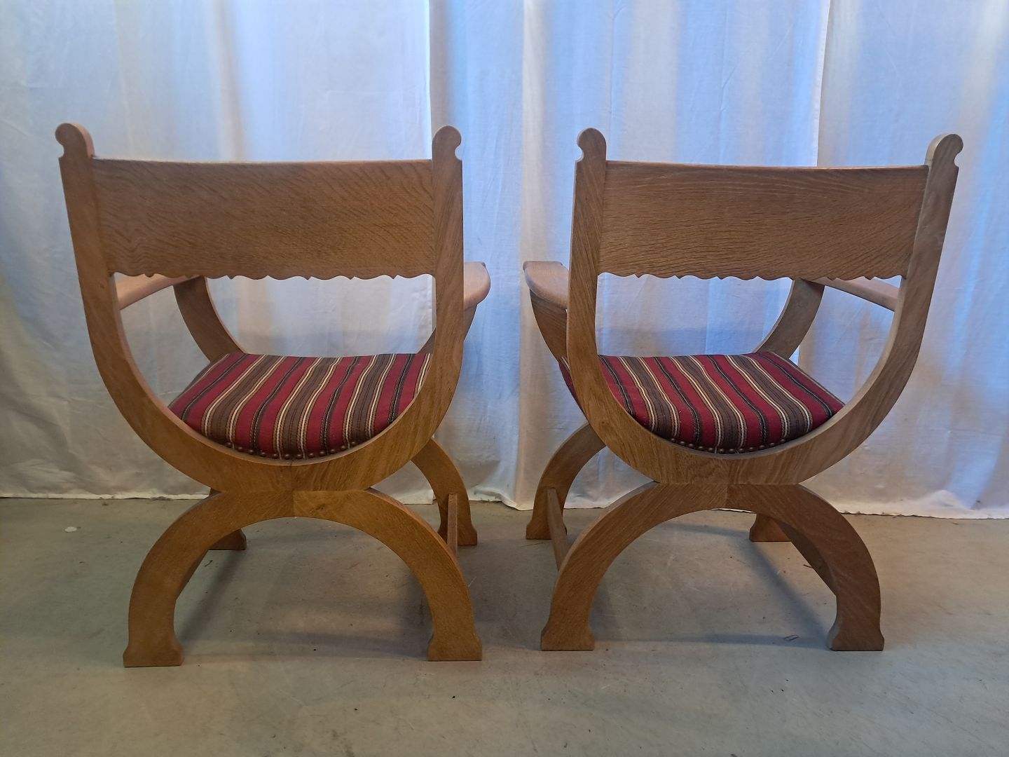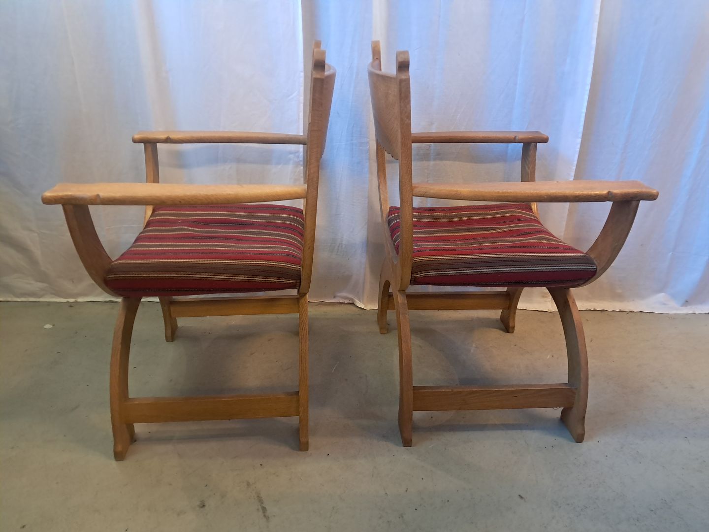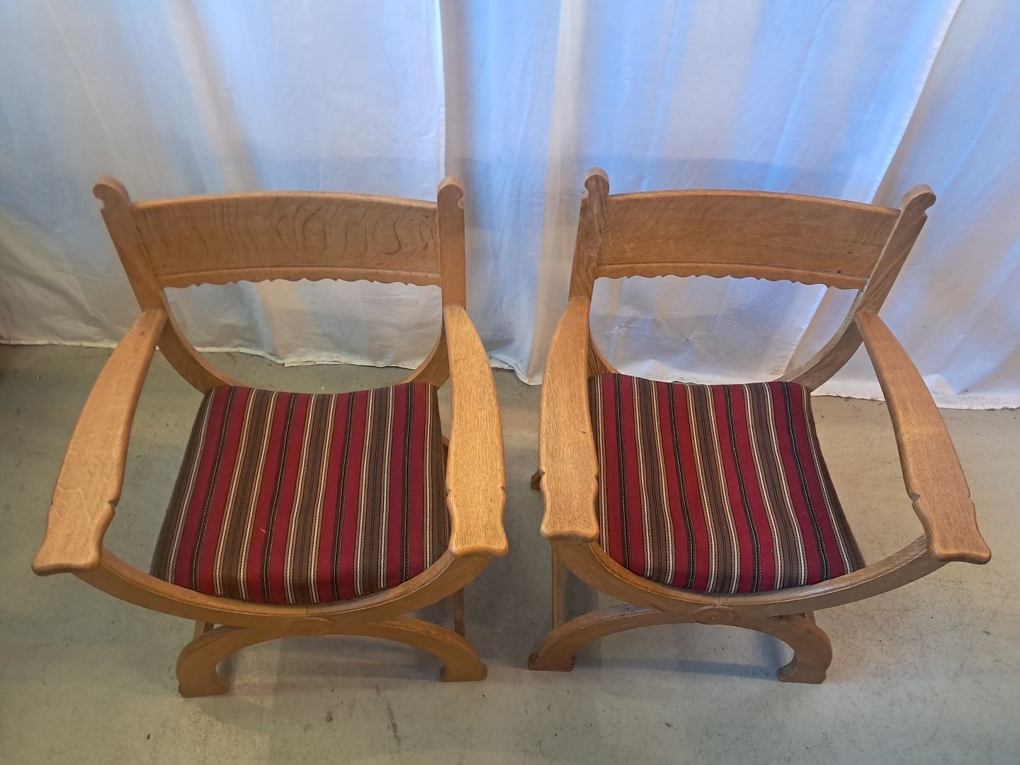 2 Armstole i massivt egetræ, fra 1980erne.De har brugsspor.