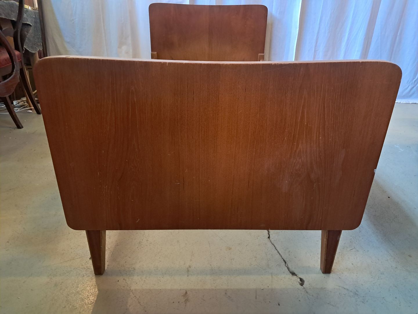 Seng i fineret teaktræ, fra 1960erne.Den har brugsspor og der medfølger ikke madras.
