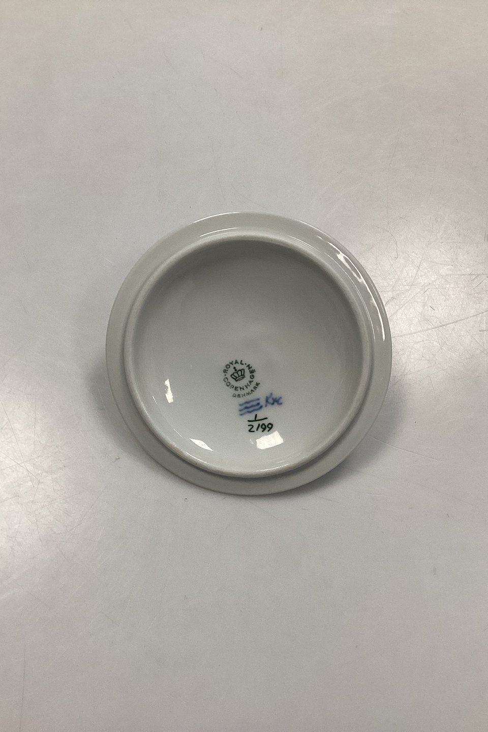 Royal Copenhagen Musselmalet Riflet Låg til Bouillonkop No. 2199. Måler 12 cm / 4.73 in. i diameter. 1. SorteringLager: 1