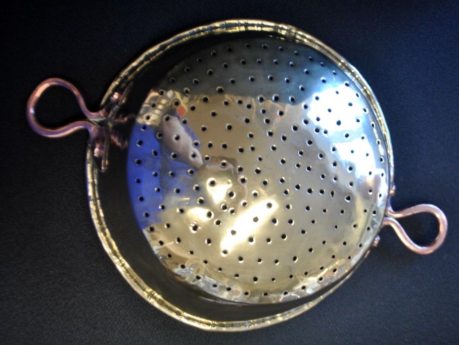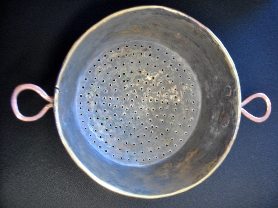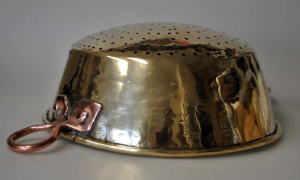Dørslag i messing, 19. årh. Danmark. Med ører af kobber. Dia: 24,5 cm.Emne nummer: 29045