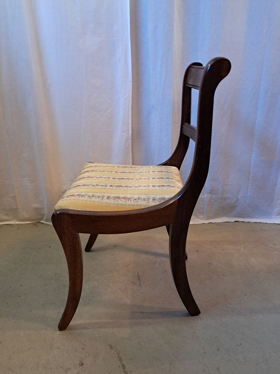 Stol i massivt mahogni, fra 1980erne.Den har brugsspor.
