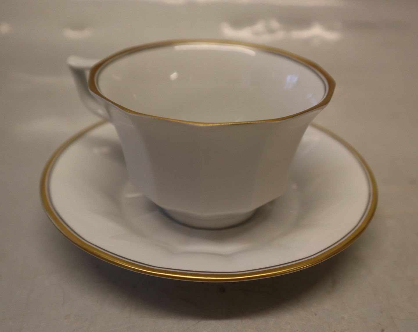 12 sæt på lager 1535 guld og grå kant8608-1535 Kop & underkop ca 13.5 cm (072-073) Rød ekstra kant Kgl. hvid kantet stel med dobbelt guldkant fra Royal Copenhagen I hel og fin stand