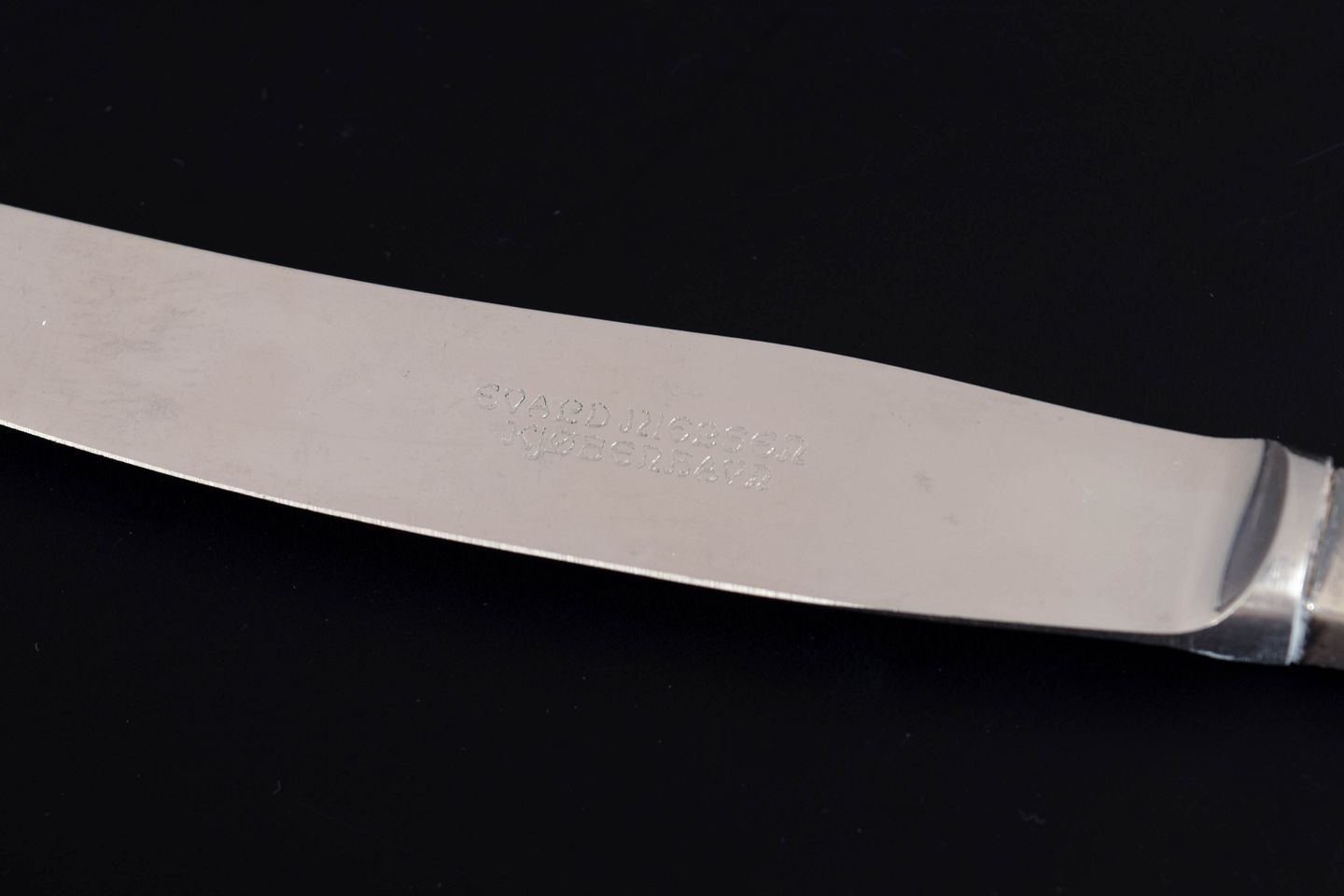 Evald Nielsen frokostknive, sæt af fire.Elegante frokostknive i sterling sølv og rustfrit stål. Model nummer 14 med klassisk, let afrundet skaftform og glat klinge. Fremstillet hos Evald Nielsen, længde 17,7 cm.