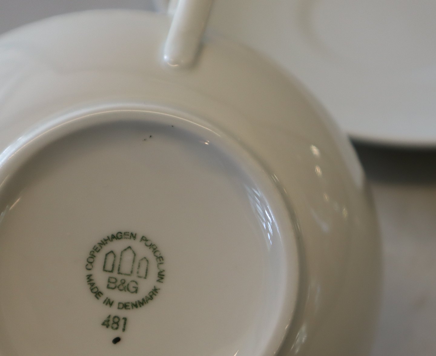 19 sæt på lager HVIDHvid 247 Bouillonkop 3 dl (481) og underkop 27,7 cm Suppekop Elegance Bing & Grøndahl Spisestel Hvidt og Cremefarvet porcelæn, med skæl. I fin og hel stand.