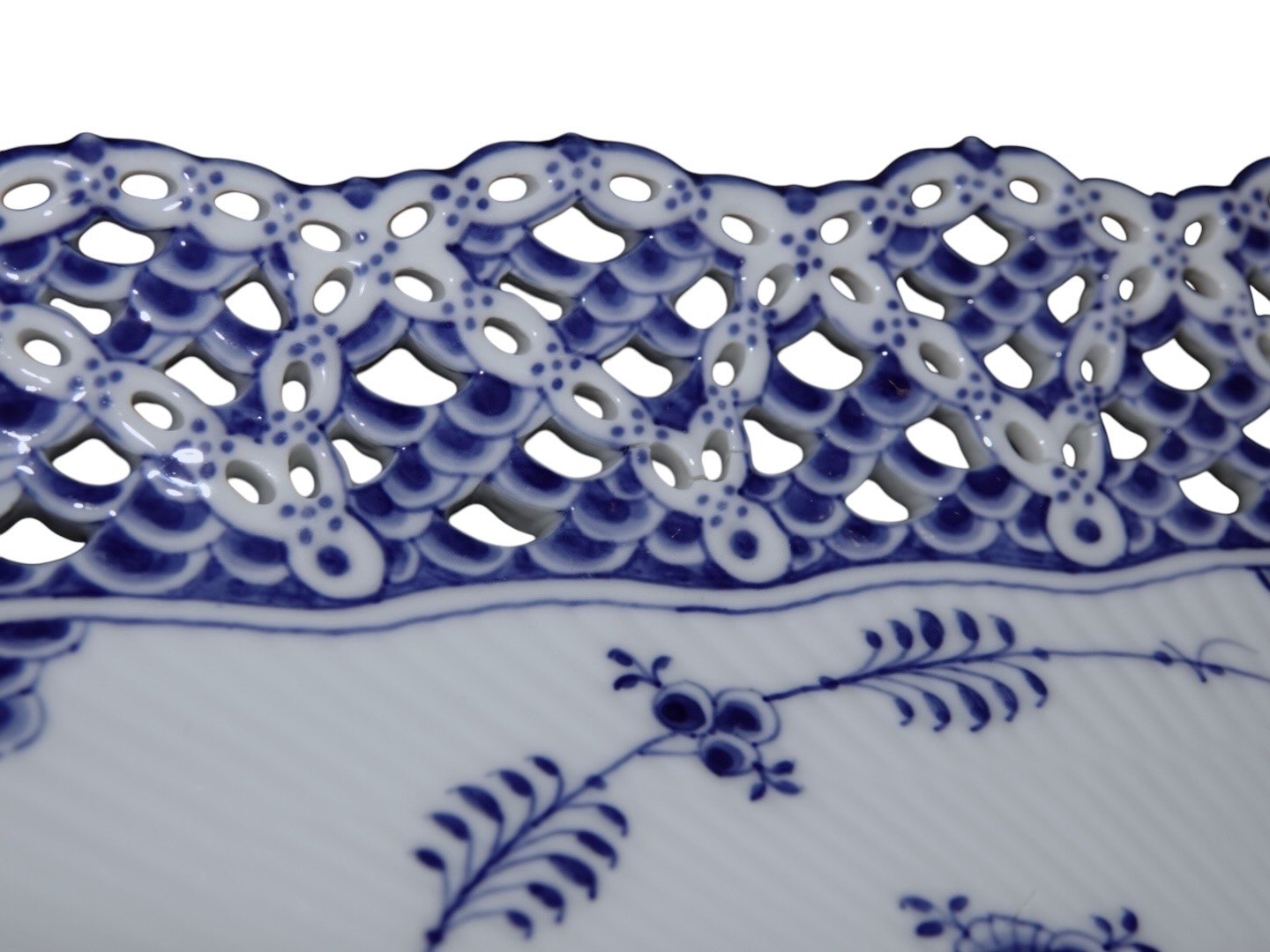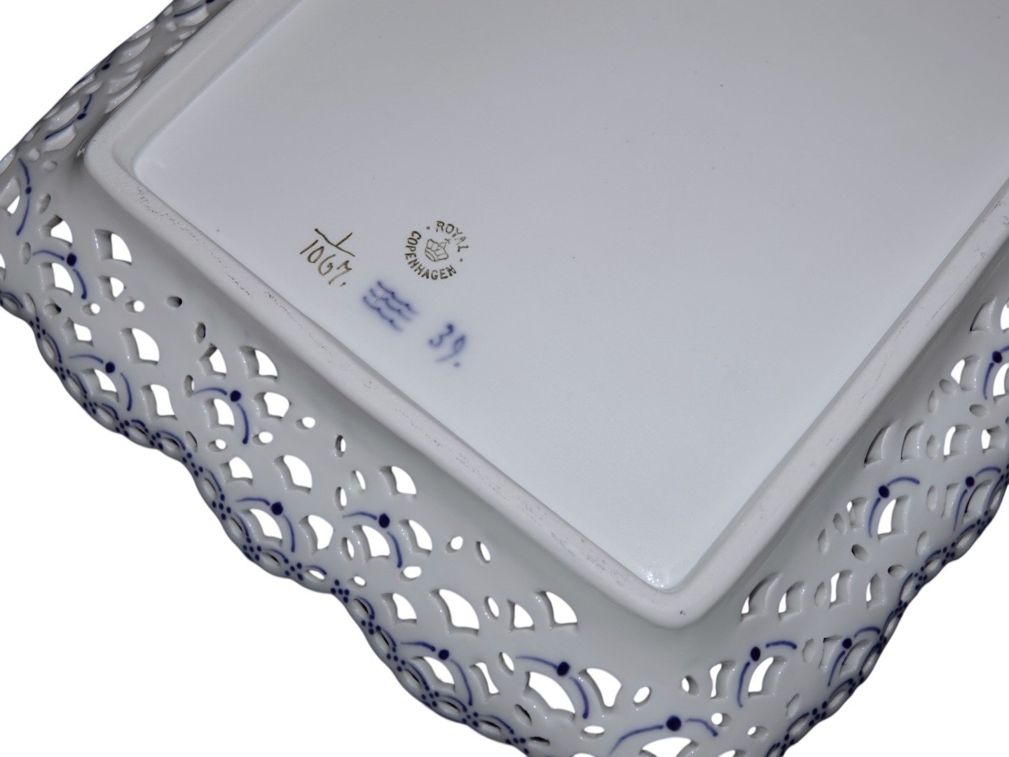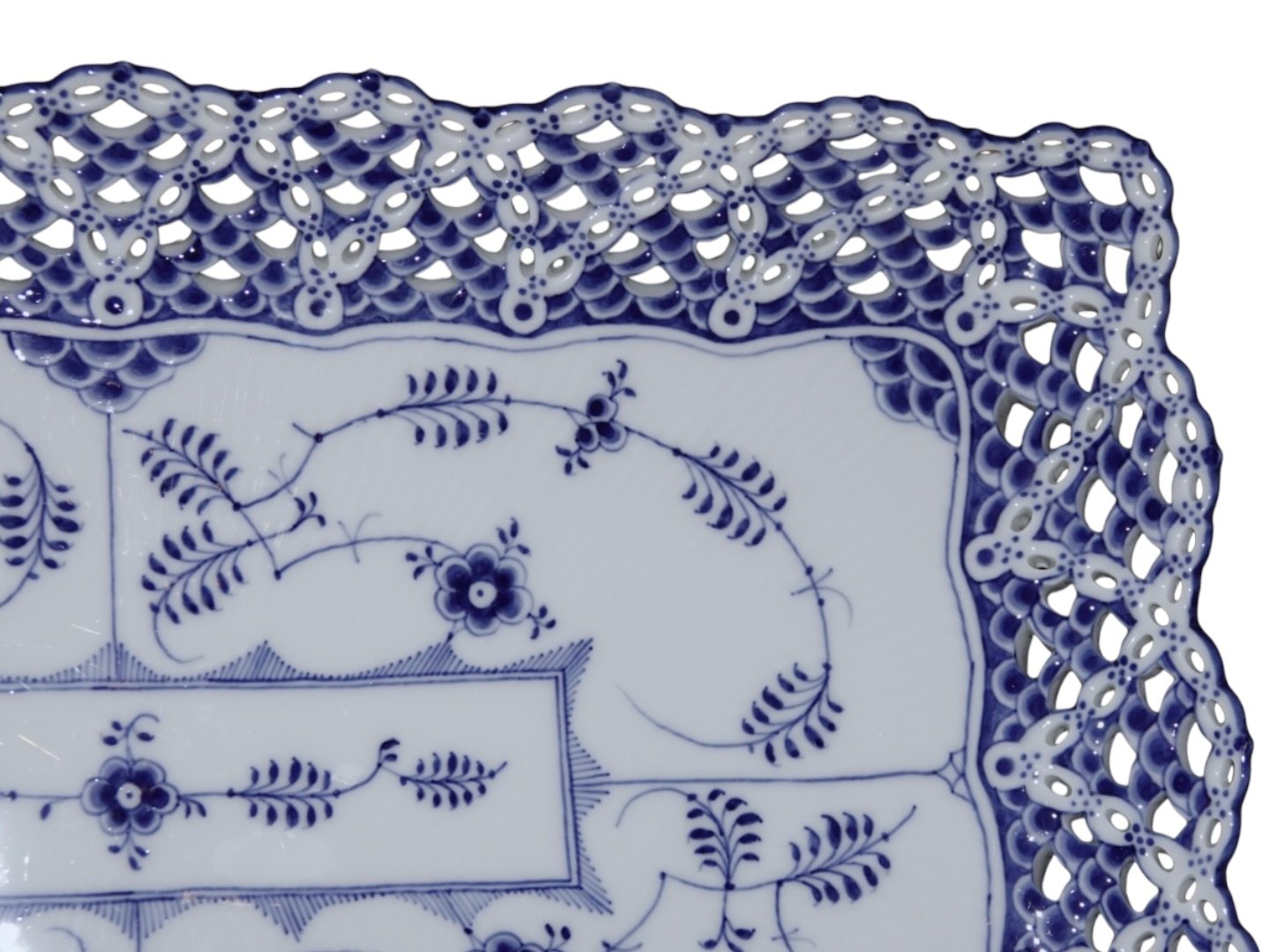 Royal Copenhagen Musselmalet Helblonde, stort og meget sjældent isfad / bakke.Fabriksmærket viser, at denne er produceret mellem 1898 og 1923.