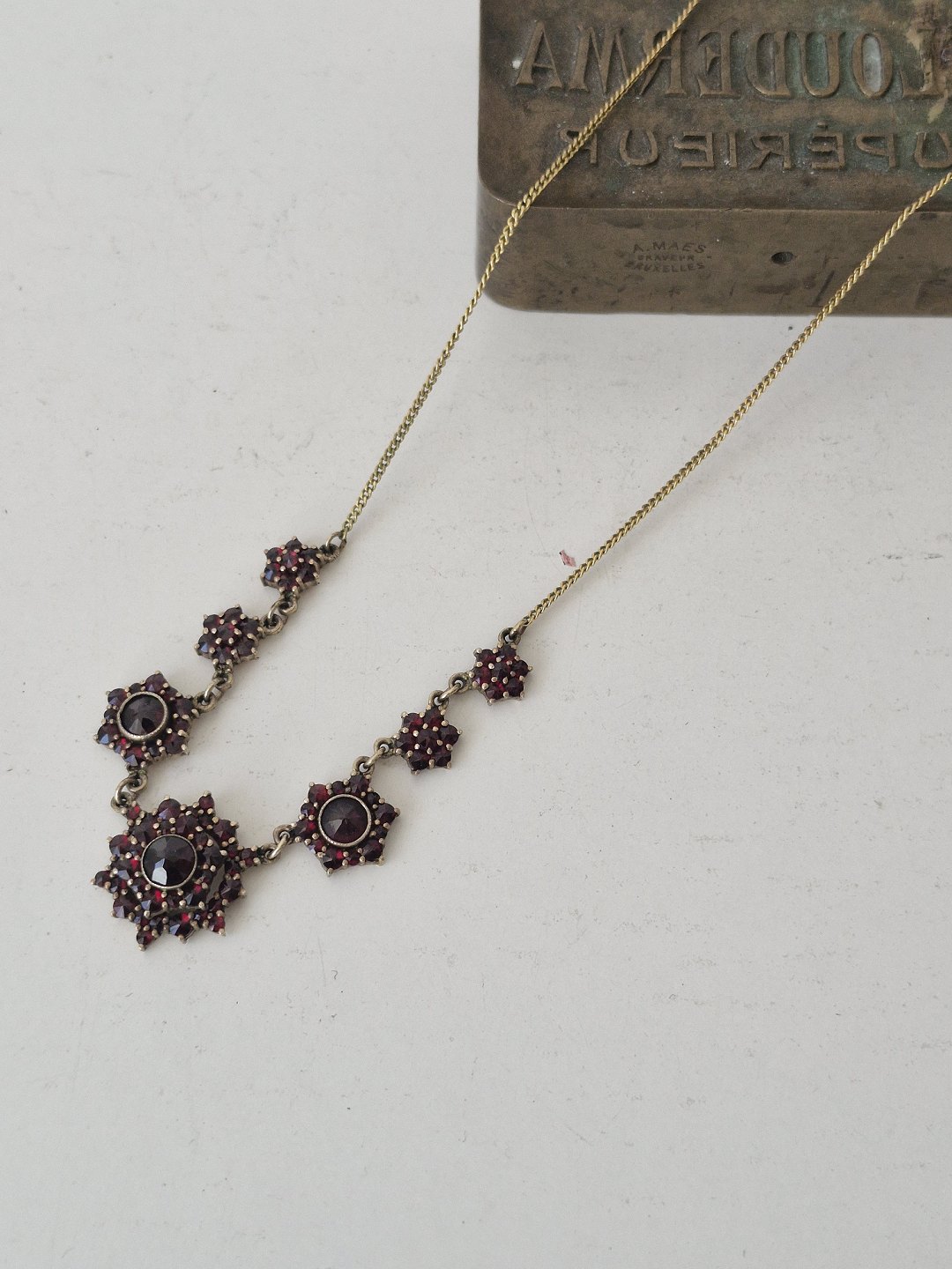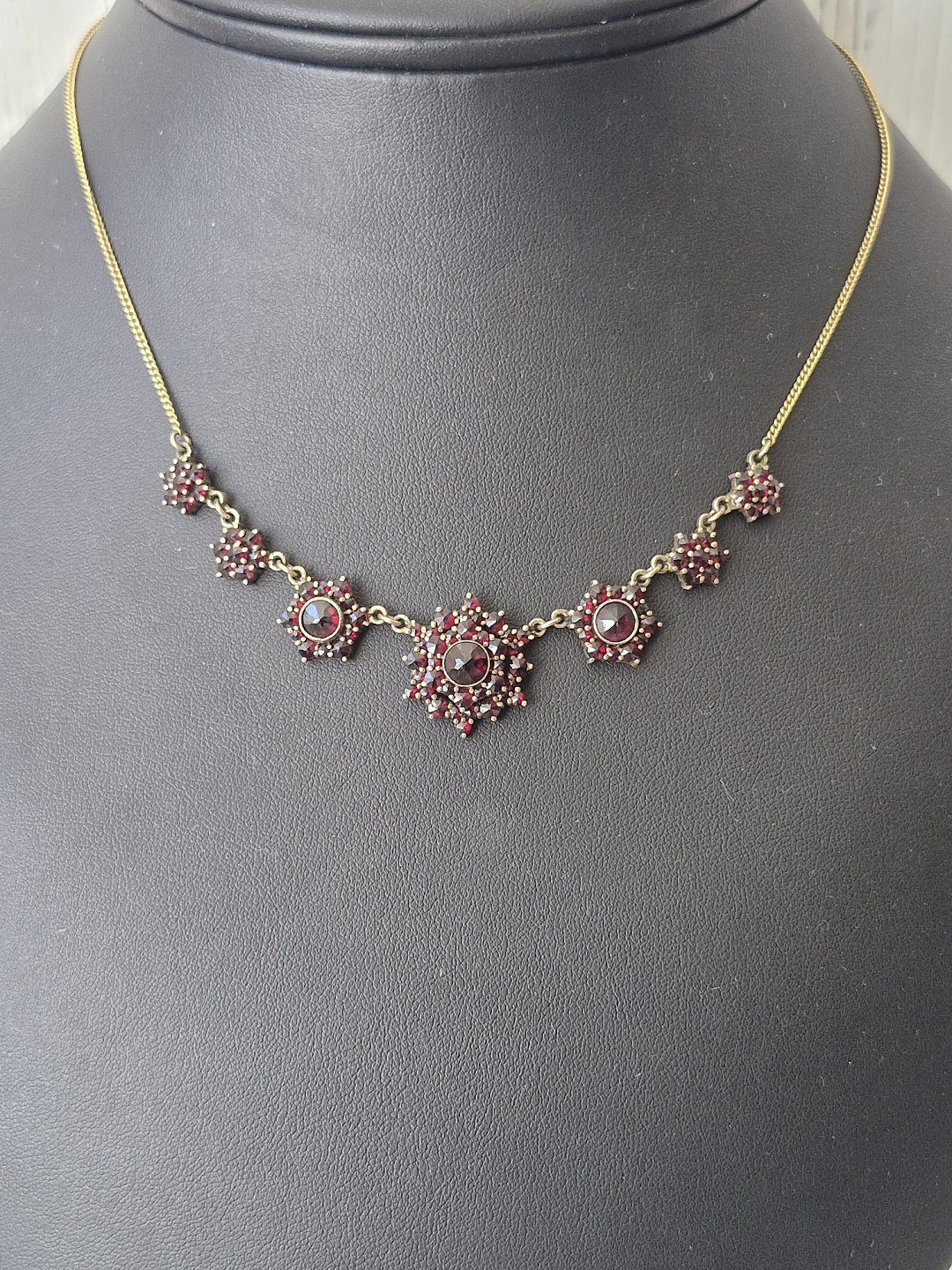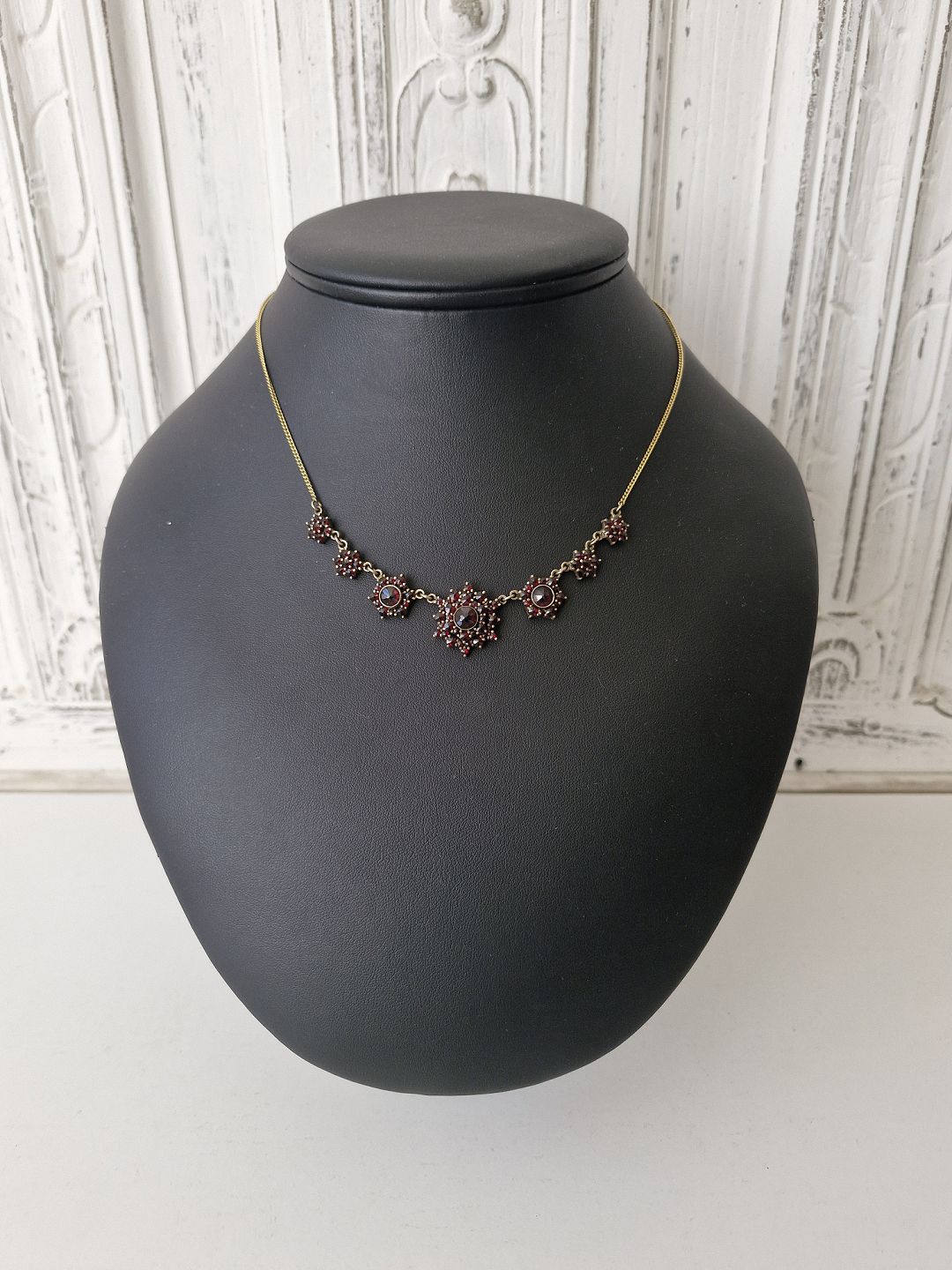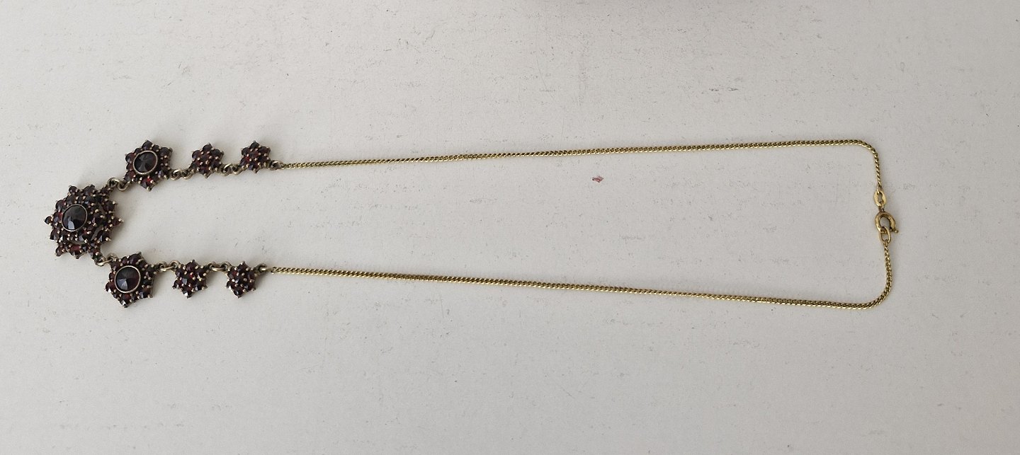 Vintage granat collier af forgyldt metalLængde 44,5 cm.