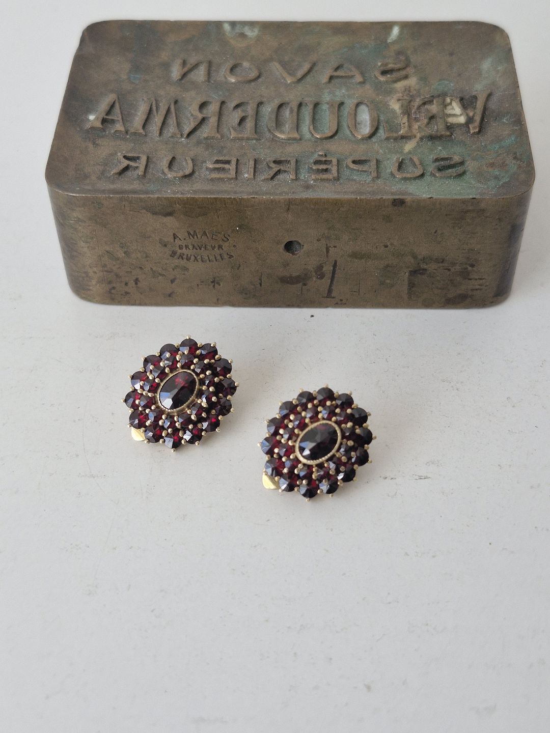 Par vintage granat øreklips i forgyldt sterlingsølv af A.MichelsenStemplet: AM - Sterling - Denmark