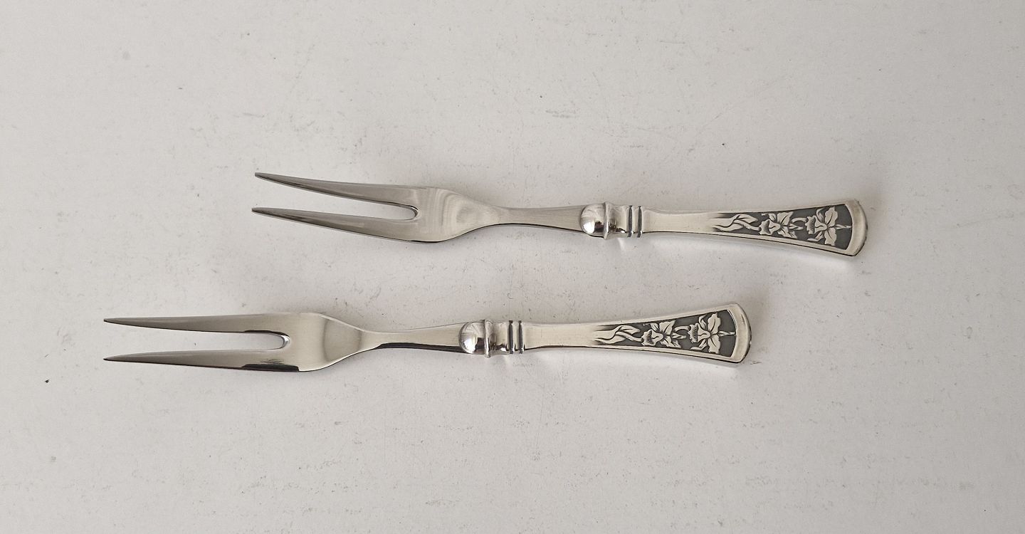 Orkide pålægsgaffel i sølv og stålStemplet de tre tårne
