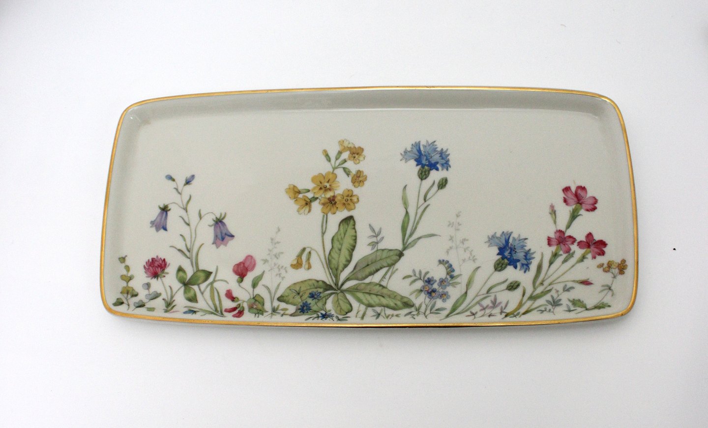 Krautheim, Selb Bavaria, Germany, Danmarks Flora cremet stel med guldkanter motiv Danmarks flora flere forskellige motiver.Rouladefad, yderst sjælden. 33 x 15,5 cm. Pris: 425 kr. stk. Lager: 1