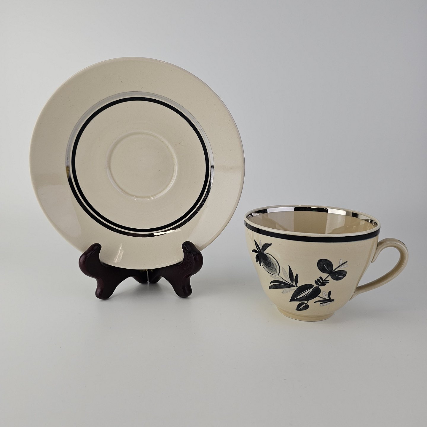 Tekop med underkop i fajance fra stellet Dragsholm fremstillet i perioden 1934-1965.Formgiver Thorkild Olsen