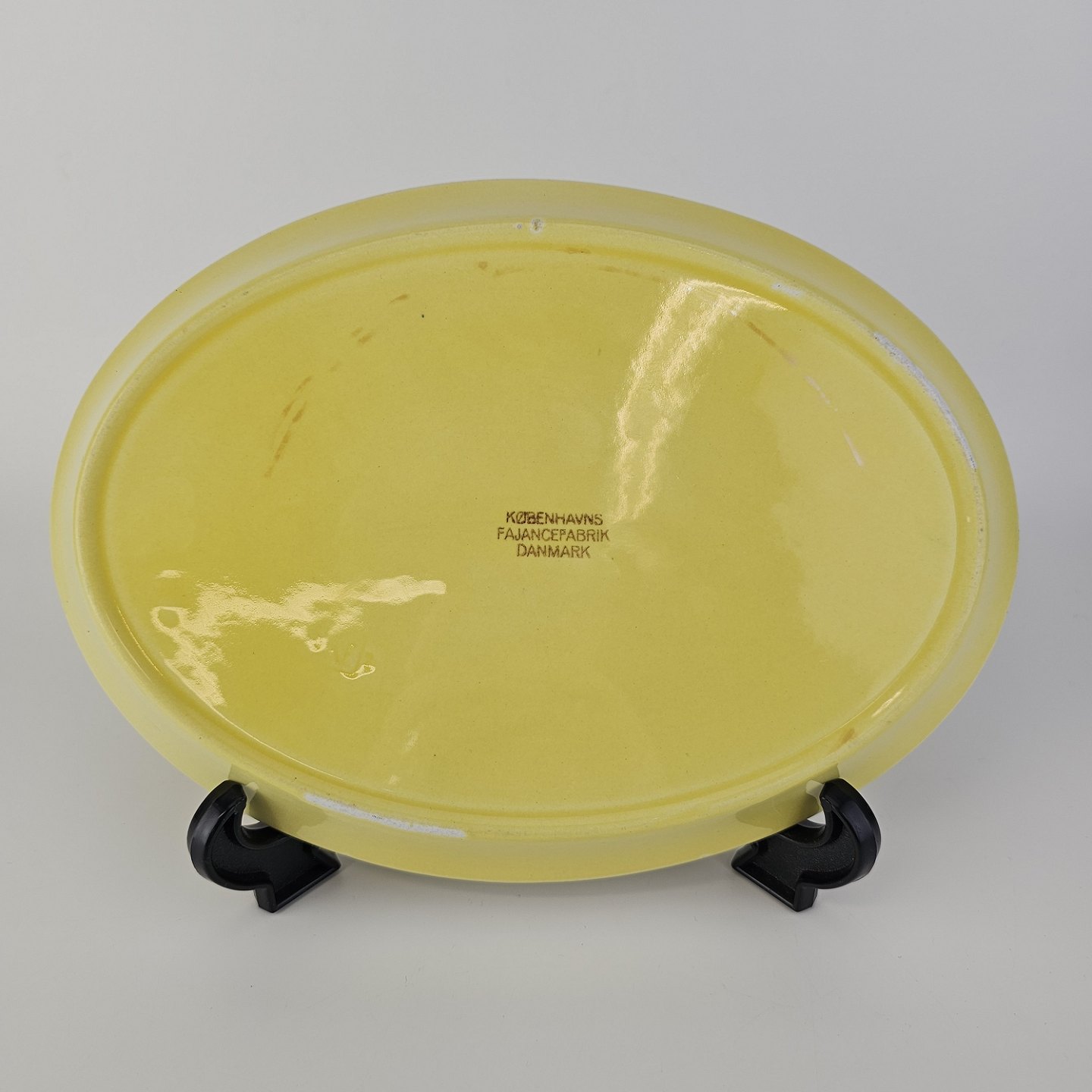 Ovalt fad i fajance fra stellet Gertrud fremstillet i perioden 1933-1939.Formgiver Nils Thorsson