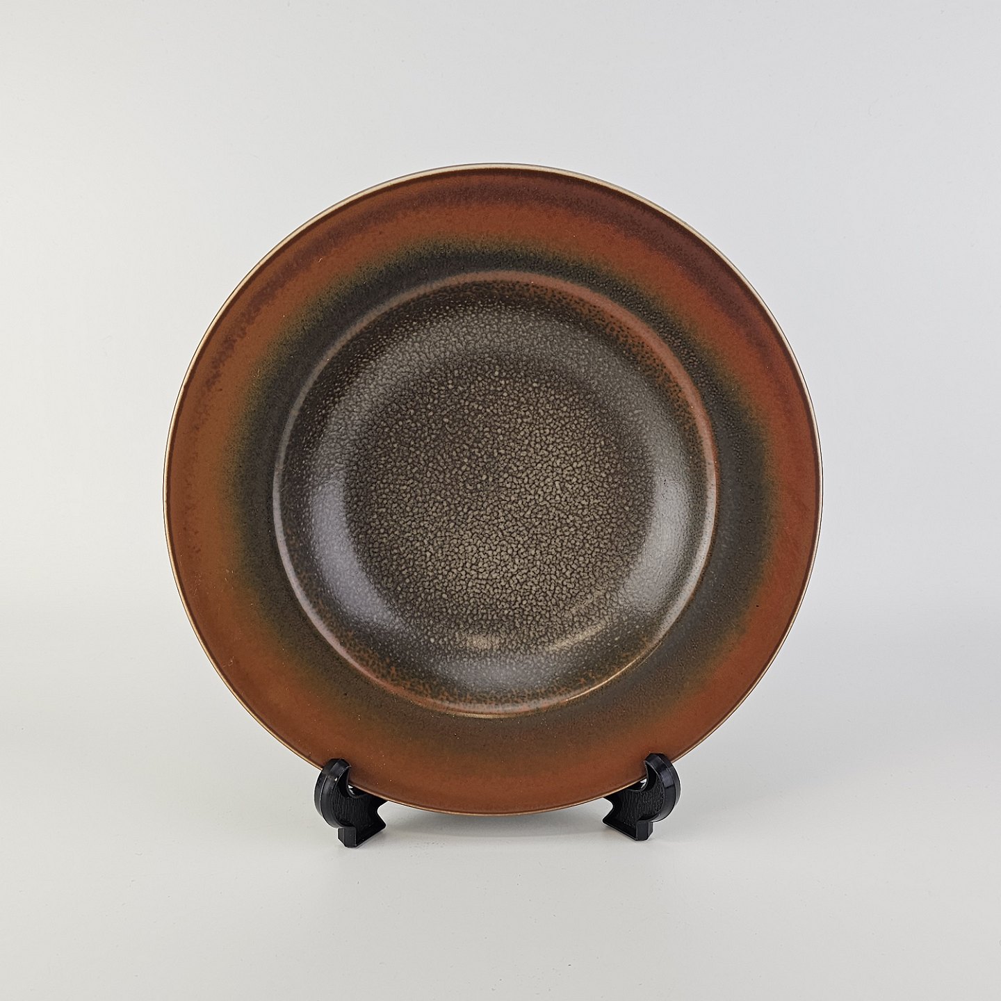 Rundt fad i stentøj med brun glasur. Nr. 2738, Model NylundProducent Bing & Grøndahl
