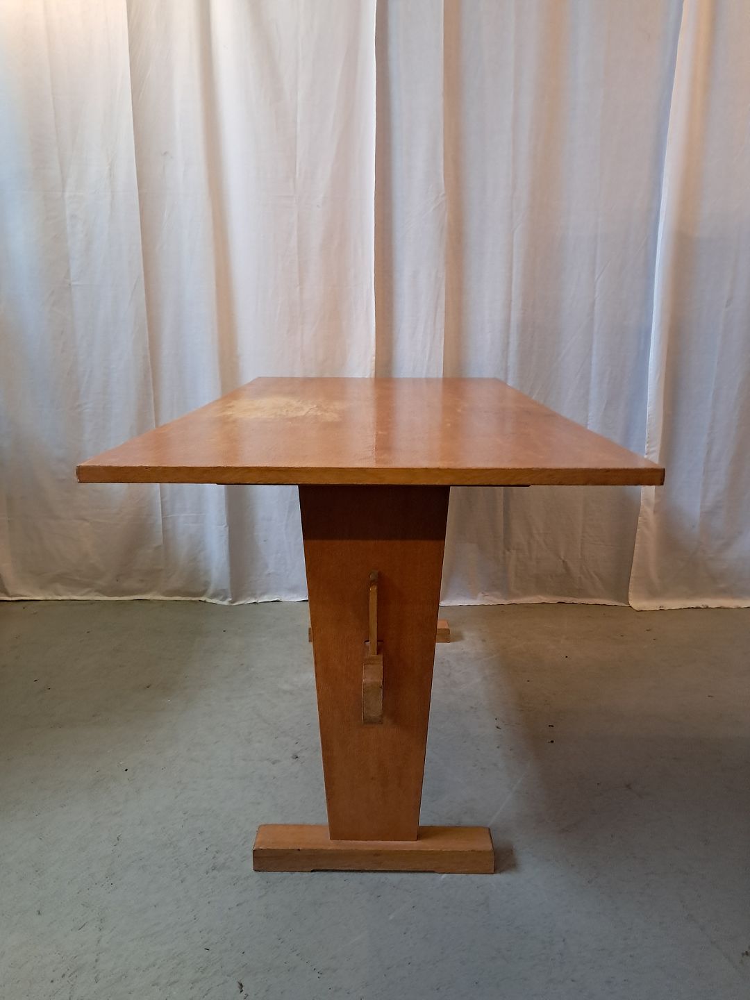 Bord i fineret egetræ, fra 1950erne.Det har brugsspor.