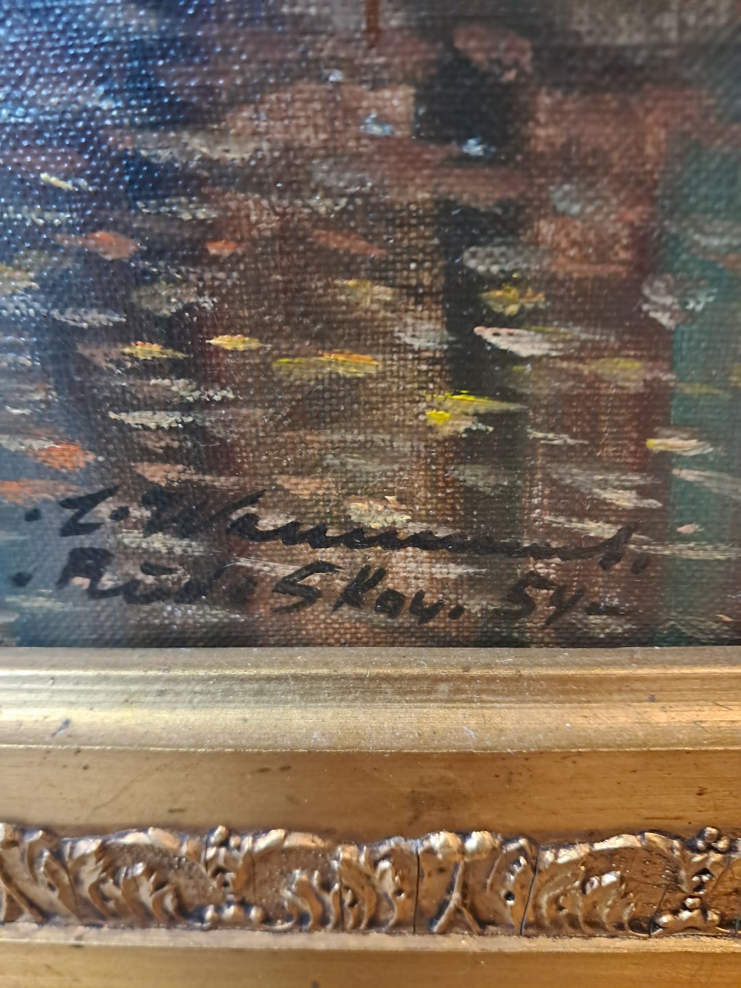 Maleri i guldmalet ramme, fra 1950erne.Det har brugsspor.