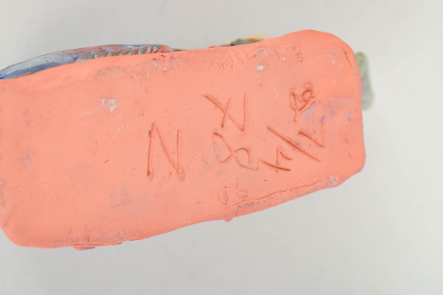 Nils-Erik Zetterström, insect figure.Unique ceramic sculpture depicting an insect executed in stoneware with multicoloured glaze in green, blue and brown tonal nuances. The figure is modelled with naturalistic detailing and placed on a small clay base, giving the piece a sculptural and lively character. Signed and dated 1978.
