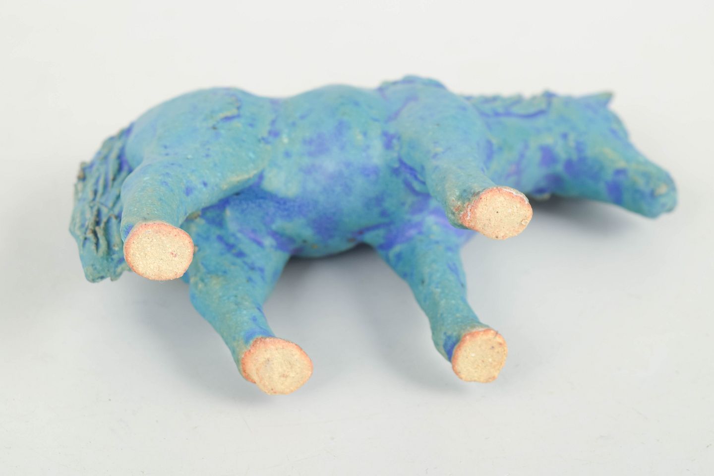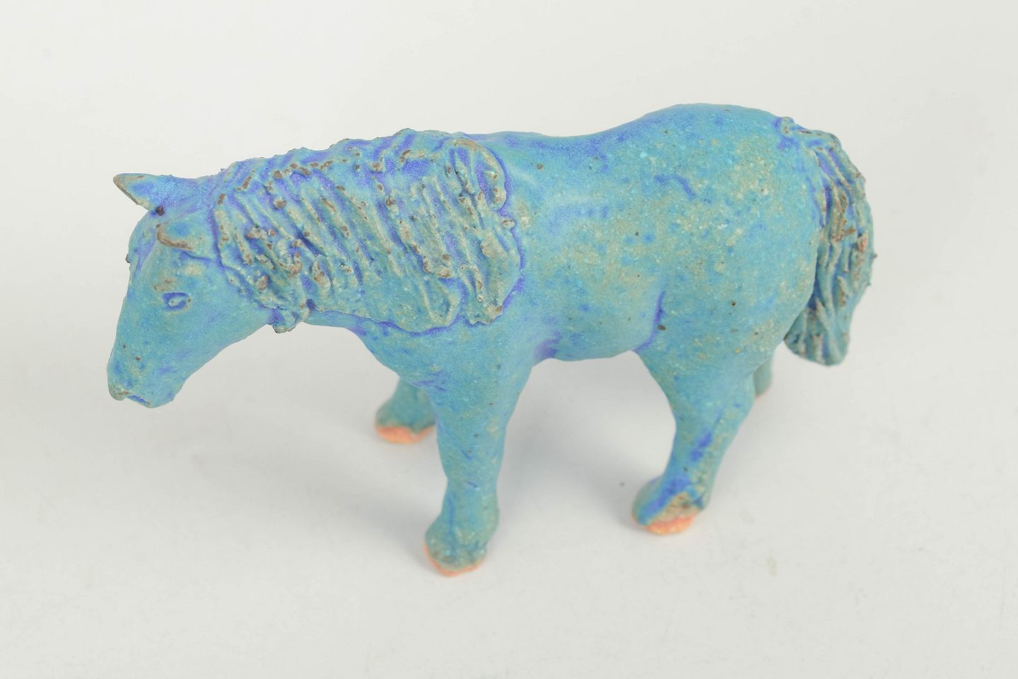 Nils-Erik Zetterström, pony figure.Unique ceramic sculpture depicting a pony executed in stoneware with blue-green glaze and subtle tonal variations across the surface. The figure is modelled with a natural posture and detailed mane and tail, giving the piece a lively and expressive character. Unsigned unique work from the 1970s.