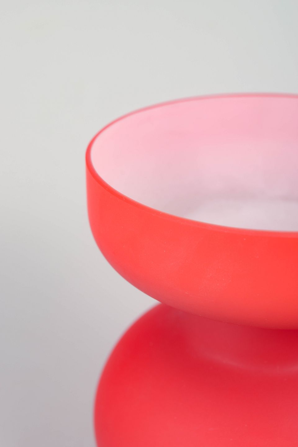 Carlo Moretti, Murano, vase.Kompakt kunstglasvase i matteret rødt glas med rund kugleformet krop og cylindrisk hals. Original mærkat “Moretti Carlo – Murano Italia”.