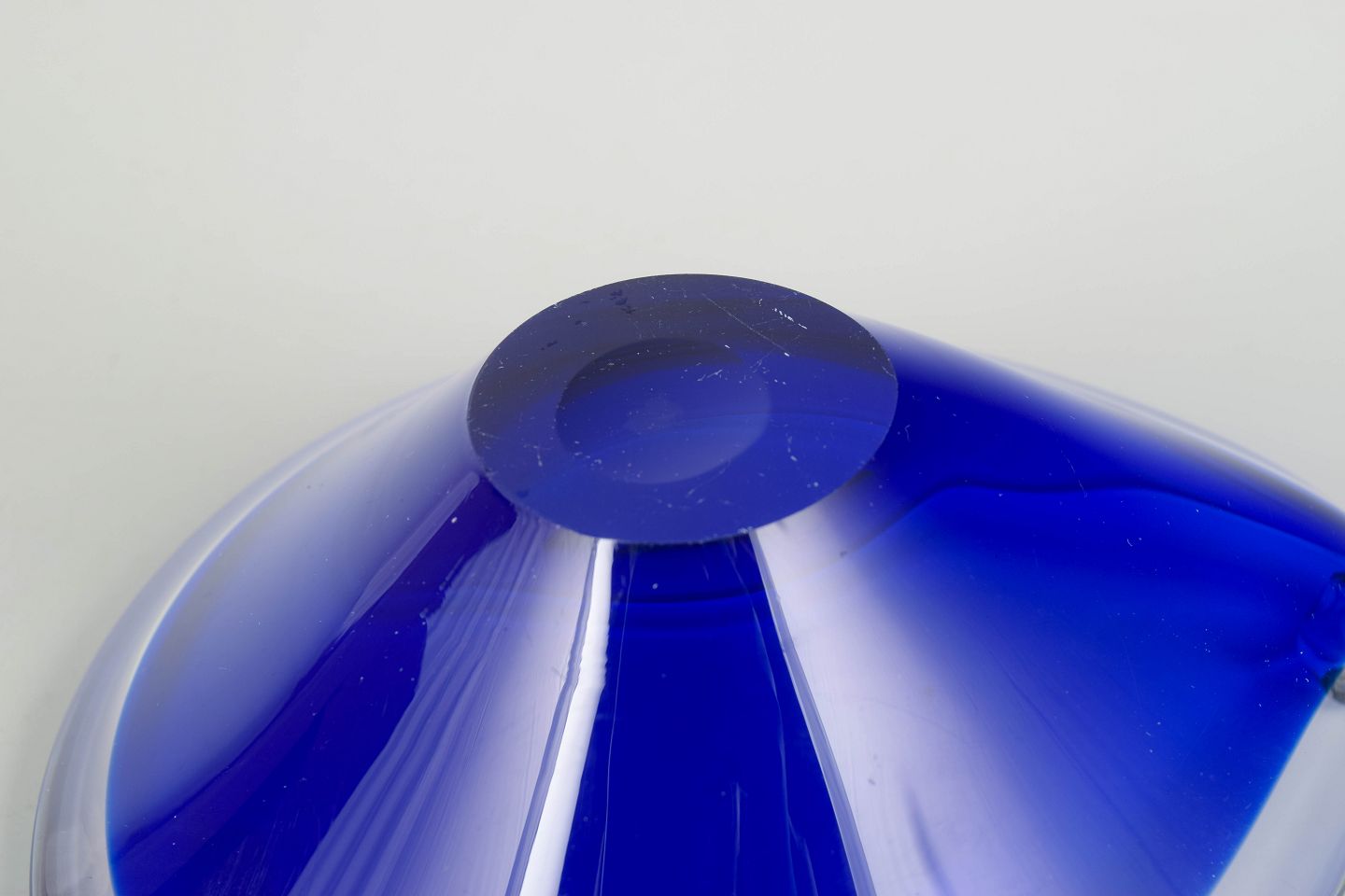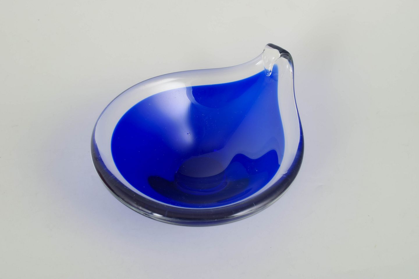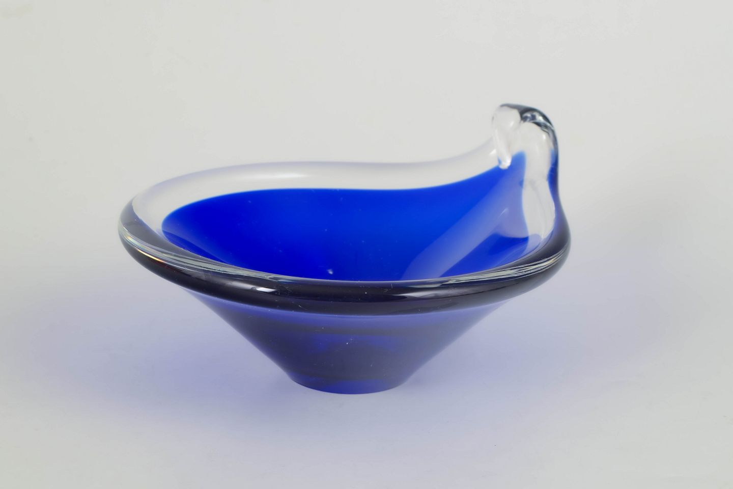 Murano, bowl.Organically shaped glass bowl in deep blue glass with clear rim and softly flowing edge, produced in the classic Murano art glass tradition.
