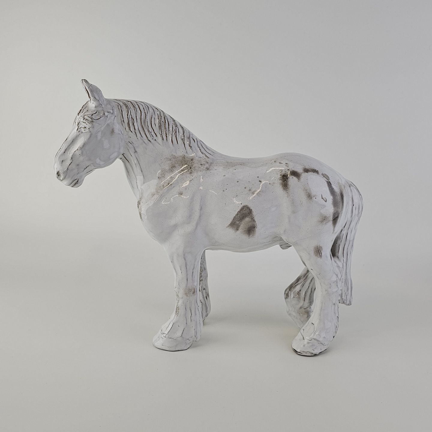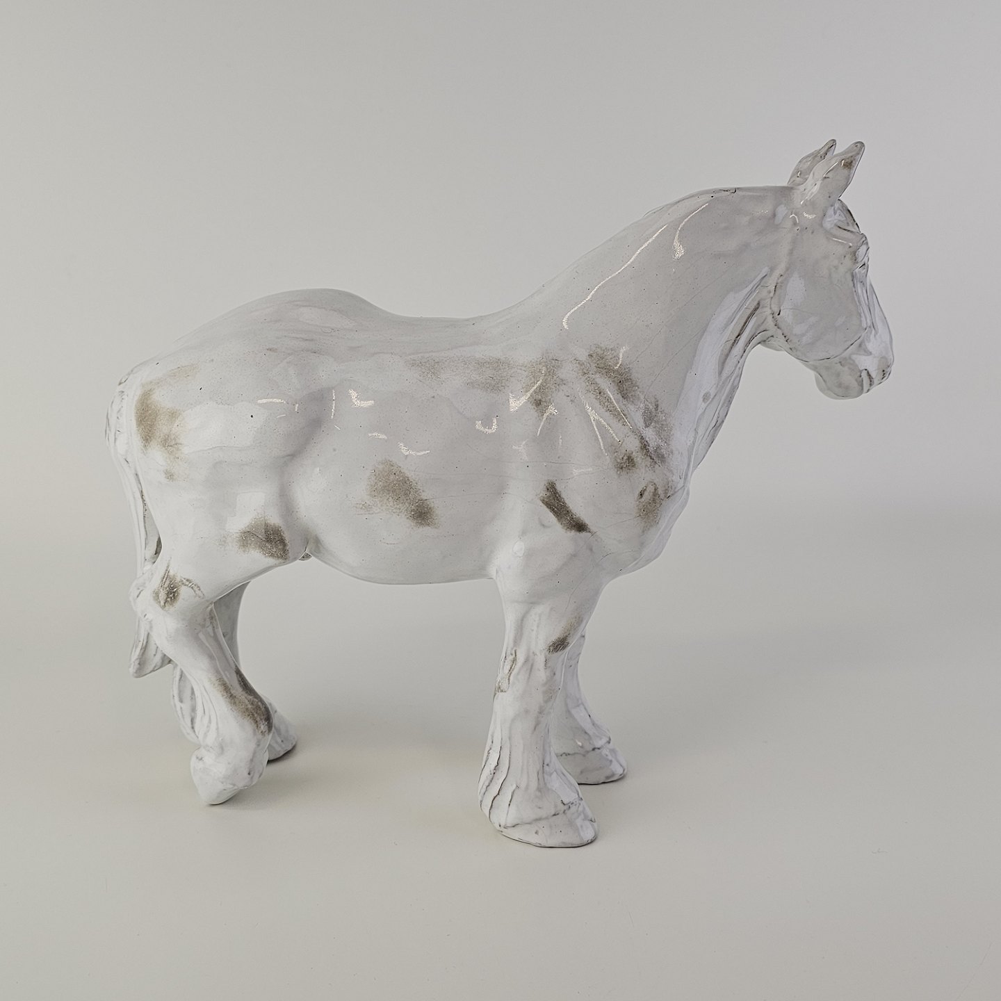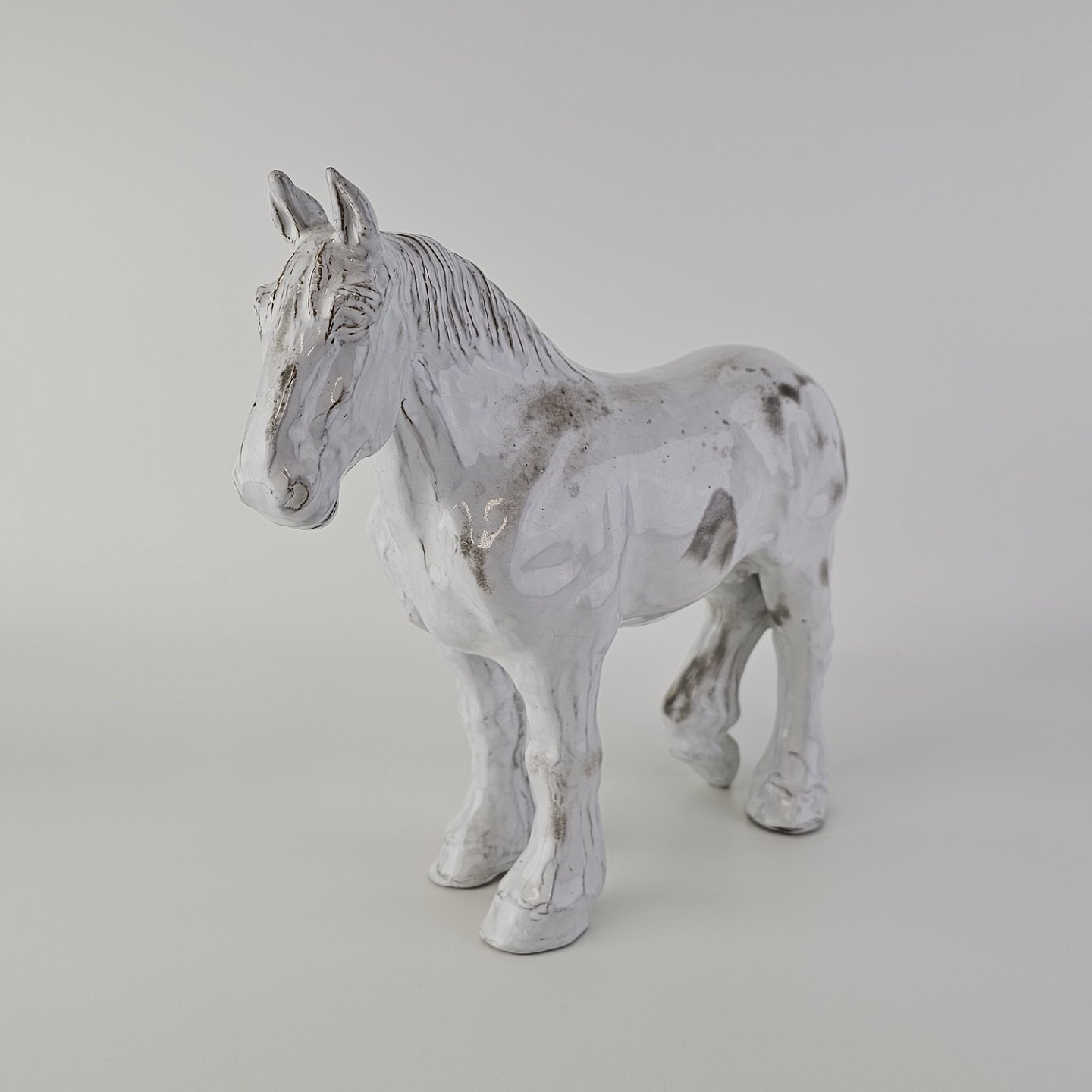 Figur af en hvid hest i porcelænFormgiver ERS, signeret