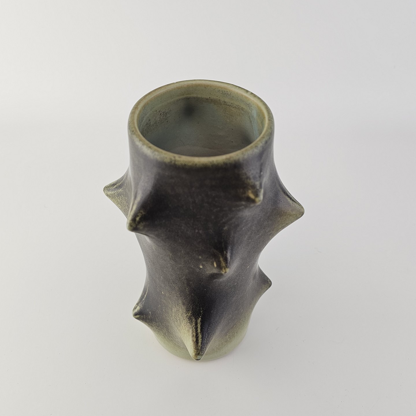 Vase i glaseret stentøj med motiv af en rosenthorn