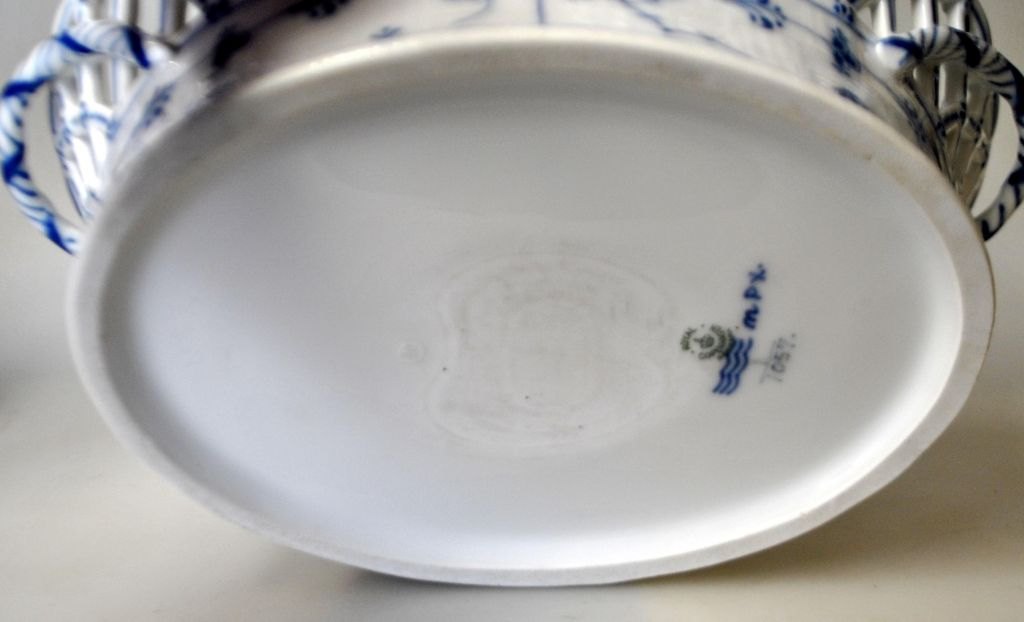 Royal Copenhagen helblonde frugtskål/jardiniere, 1057, 20. årh. København, Danmark. Stemplet. H.: 9,5 cm. L.: 28 cm. B.: 21 cm.1. sortering.