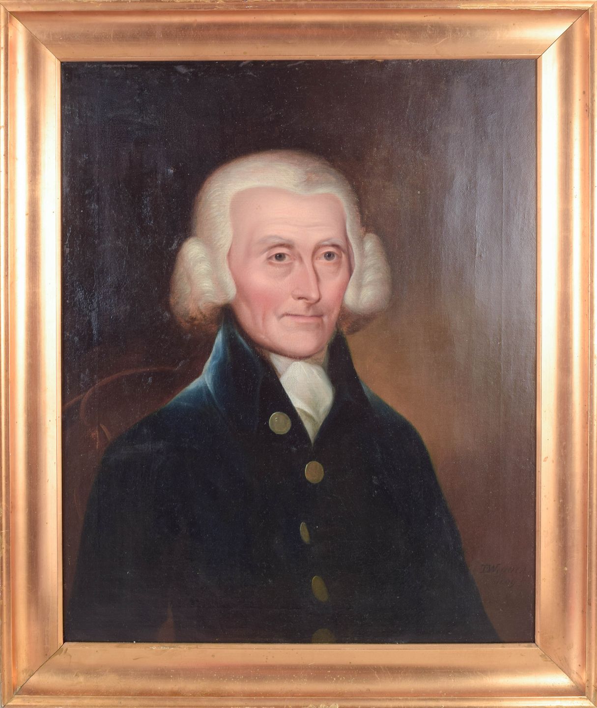 Thomas Weaver, oil painting on canvas, listed British artist, dated 1807.Portrait of a gentleman executed in the classical English portrait tradition of the early nineteenth century, with a dark background and naturalistic rendering of facial features and attire.
