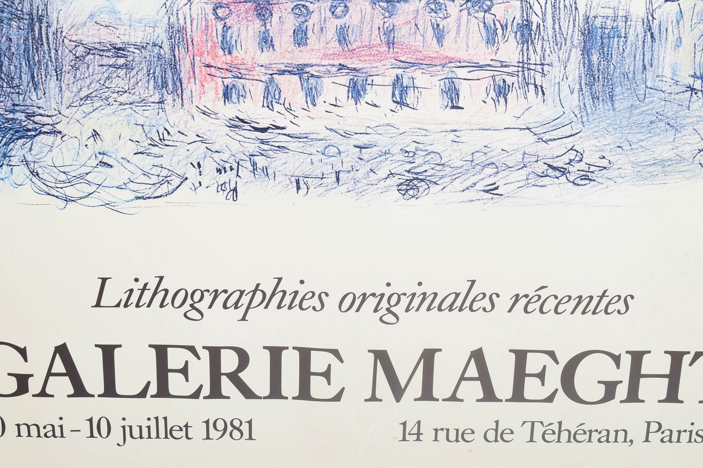 Farverig plakat udgivet i forbindelse med udstillingen “Lithographies originales récentes” hos Galerie Maeght i Paris, 20. maj – 10. juli 1981. Motivet viser en karakteristisk poetisk og drømmende scene med svævende figurer og arkitektur, udført i Chagalls let genkendelige stil med bløde farver og lyrisk streg.