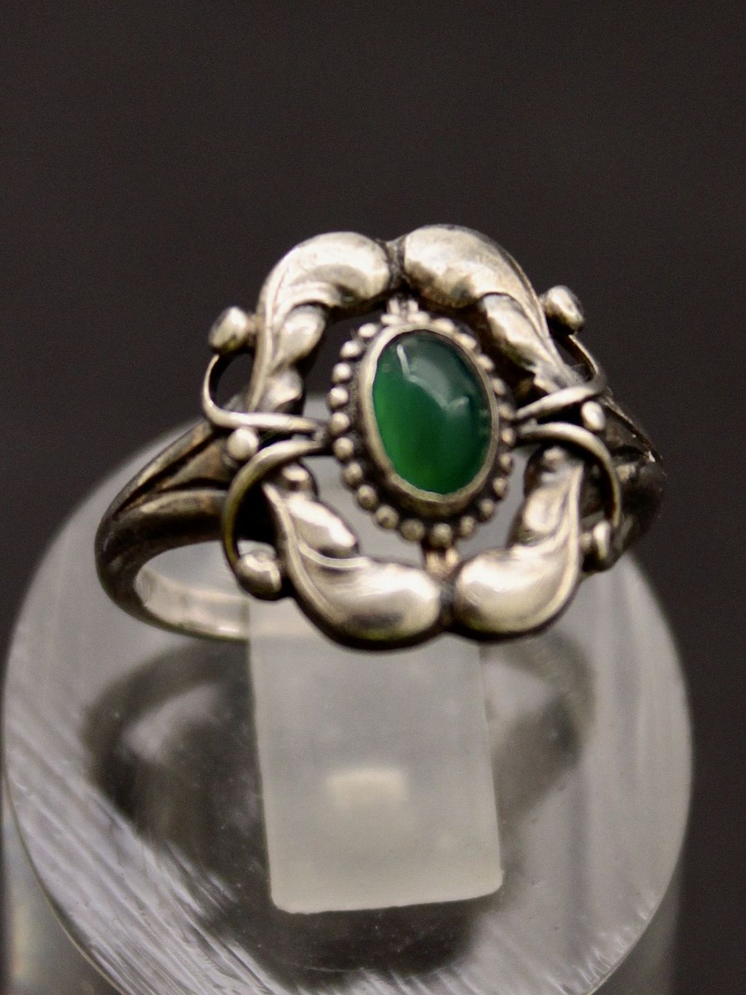 Georg Jensen vintage ring størrelse 49 design 30 stempel fra år 1930-45 med grøn agat emne nr. 634161 Udstiller