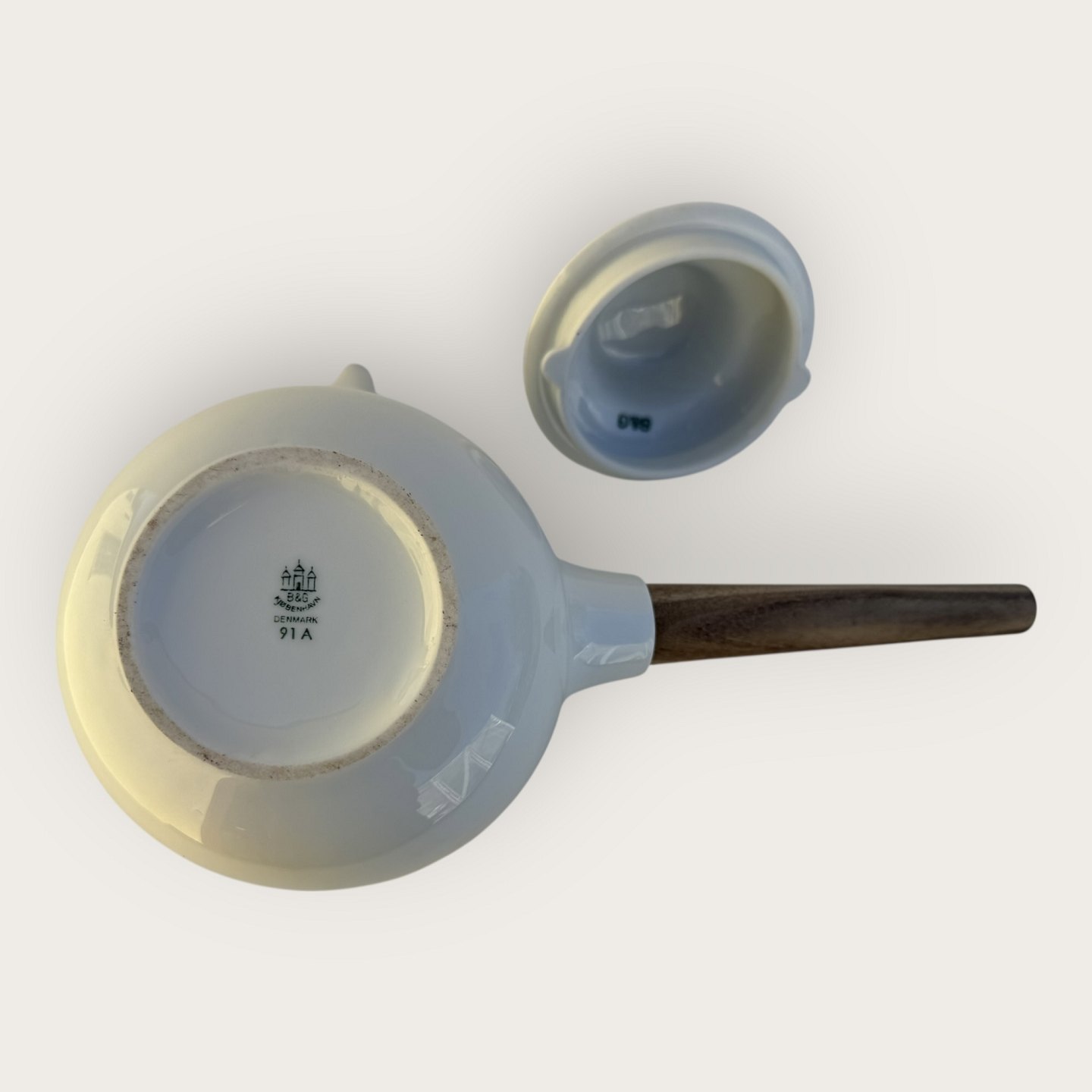 Bing & Grøndahl, Hvid Koppel, Tekande med håndtag i teak fra 1960'erne, Mål ca. 18x28cm, Design Henning Koppel *fin stand*Lager: 1