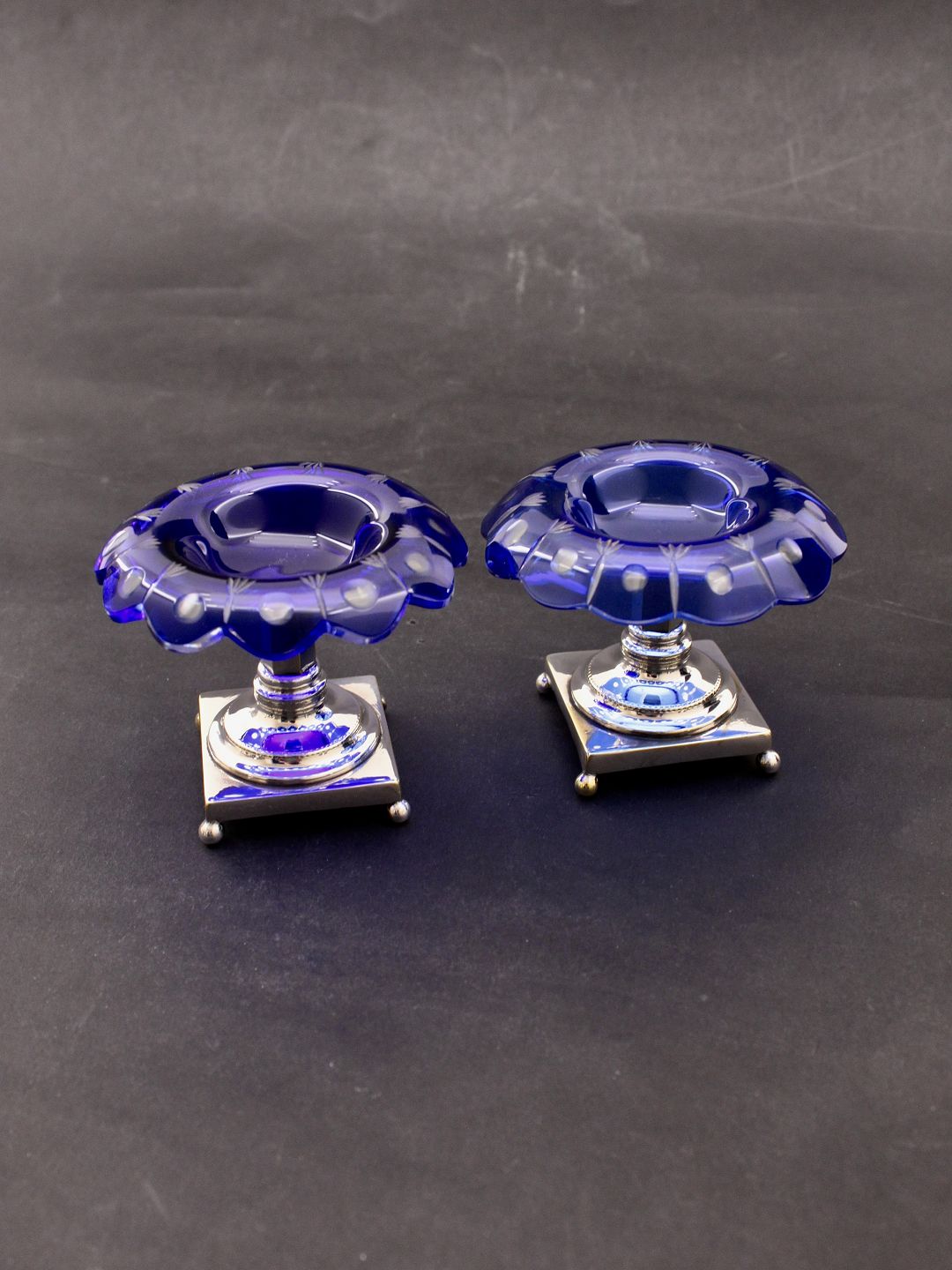 Et par saltkar i blåt glas med forsølvet fod D. 10 cm. emne nr. 634269 Udstiller