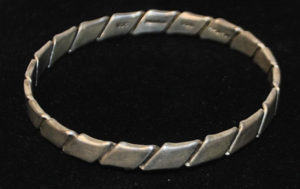 Hans Hansen armring i sterling sølv, design 203. 20. årh. Kolding, Danmark. Indvendig diameter: 6,3 cm.Emne nummer: 29017