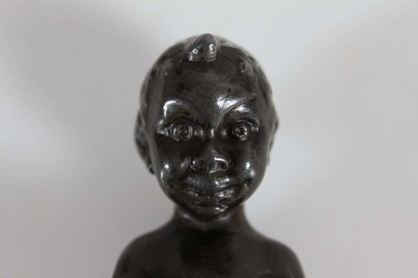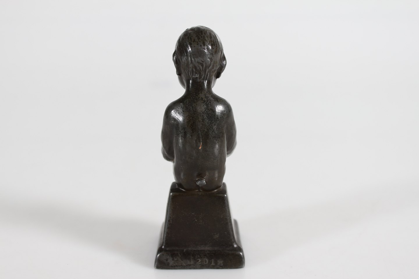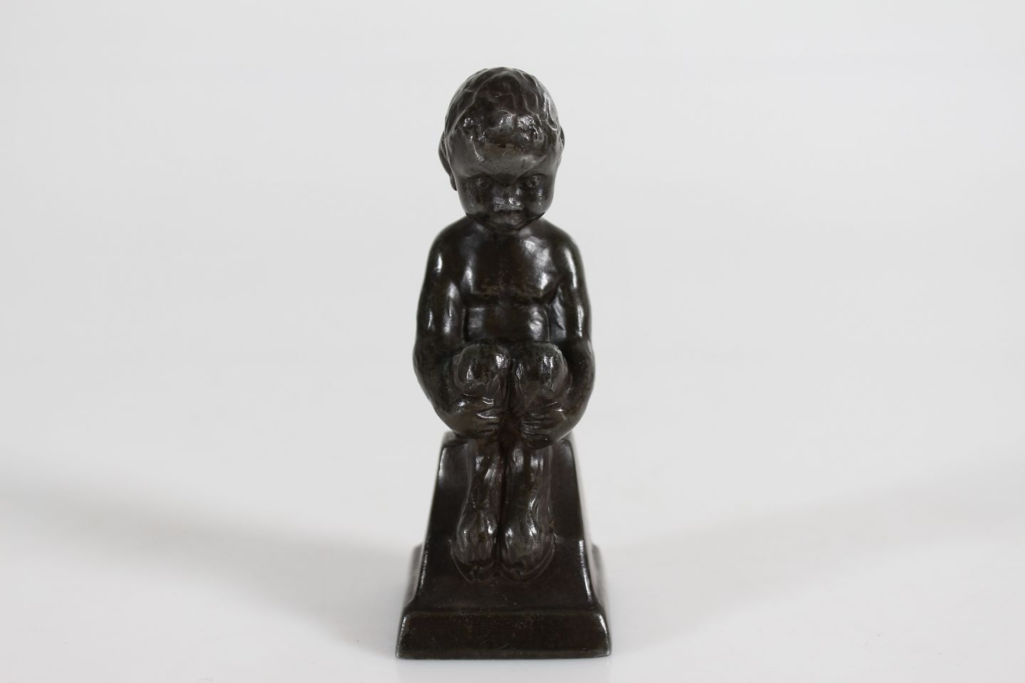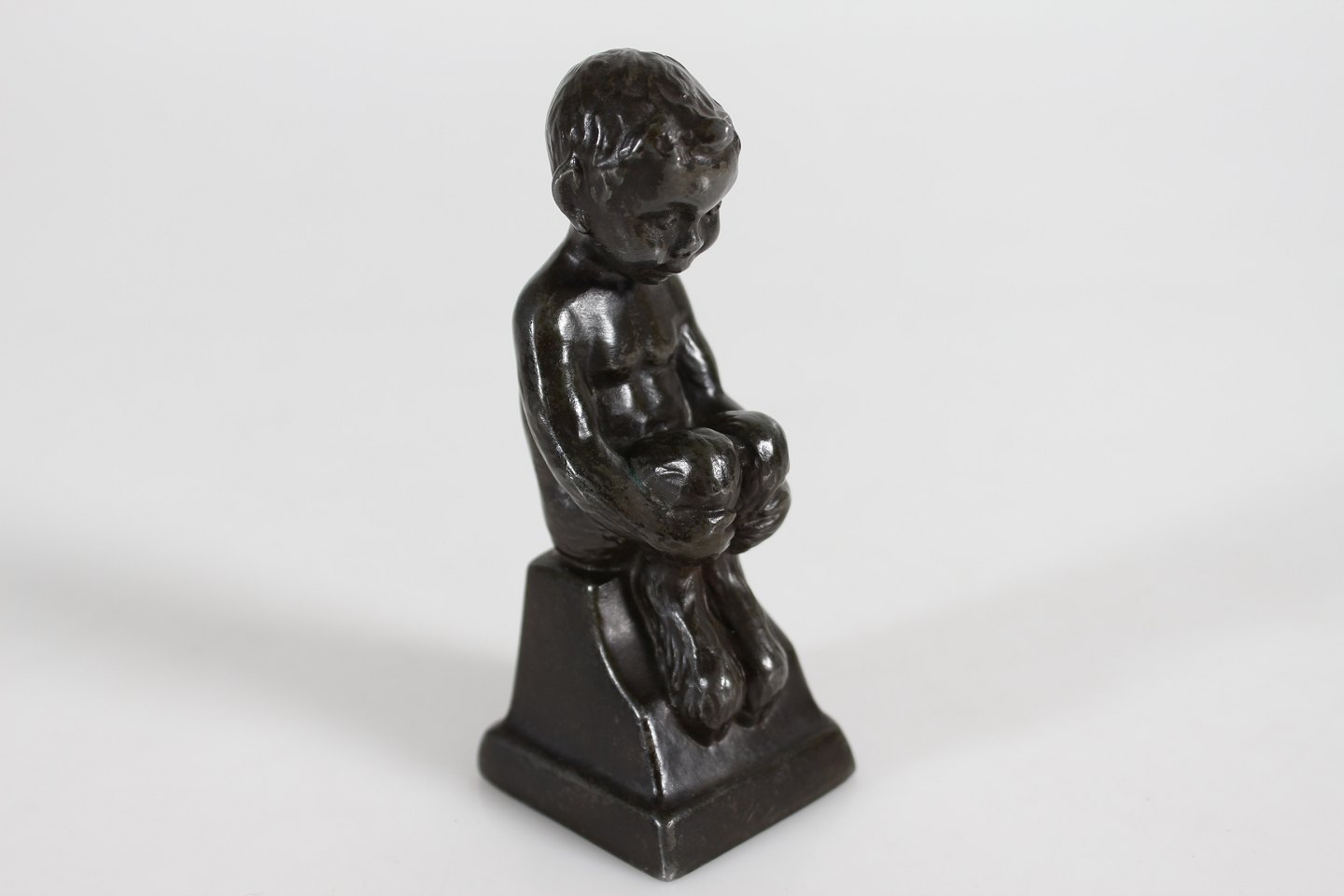 Just Andersen og E. Borch (1869-1950)Siddende lille Faun af patineret disco metal