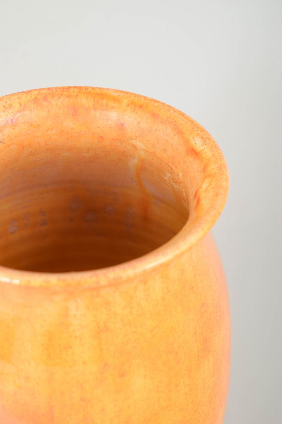Kähler, vase med gul glasur.Elegant vase i glaseret lertøj med blød, let konisk form og svagt udadbøjet rand. Udført i lys gul glasur med varme orange nuancer og fine lodrette løb, der giver et levende og organisk udtryk. Signeret HAK i bunden.