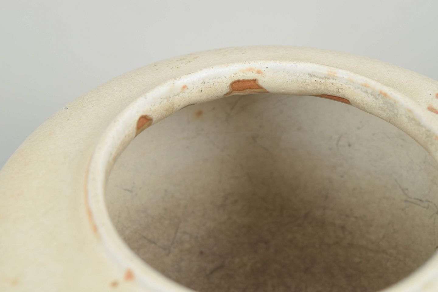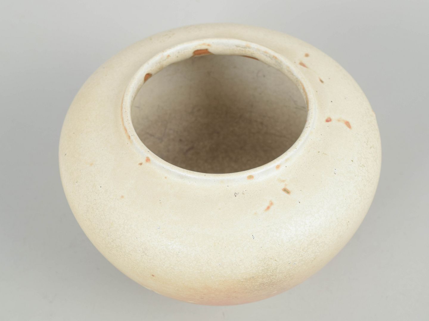 Carl Halier for Royal Copenhagen, krukke.Rund korpusformet krukke i stentøj med blød, mat glasur i lyse nuancer med rosa toner og fine variationer i overfladen.