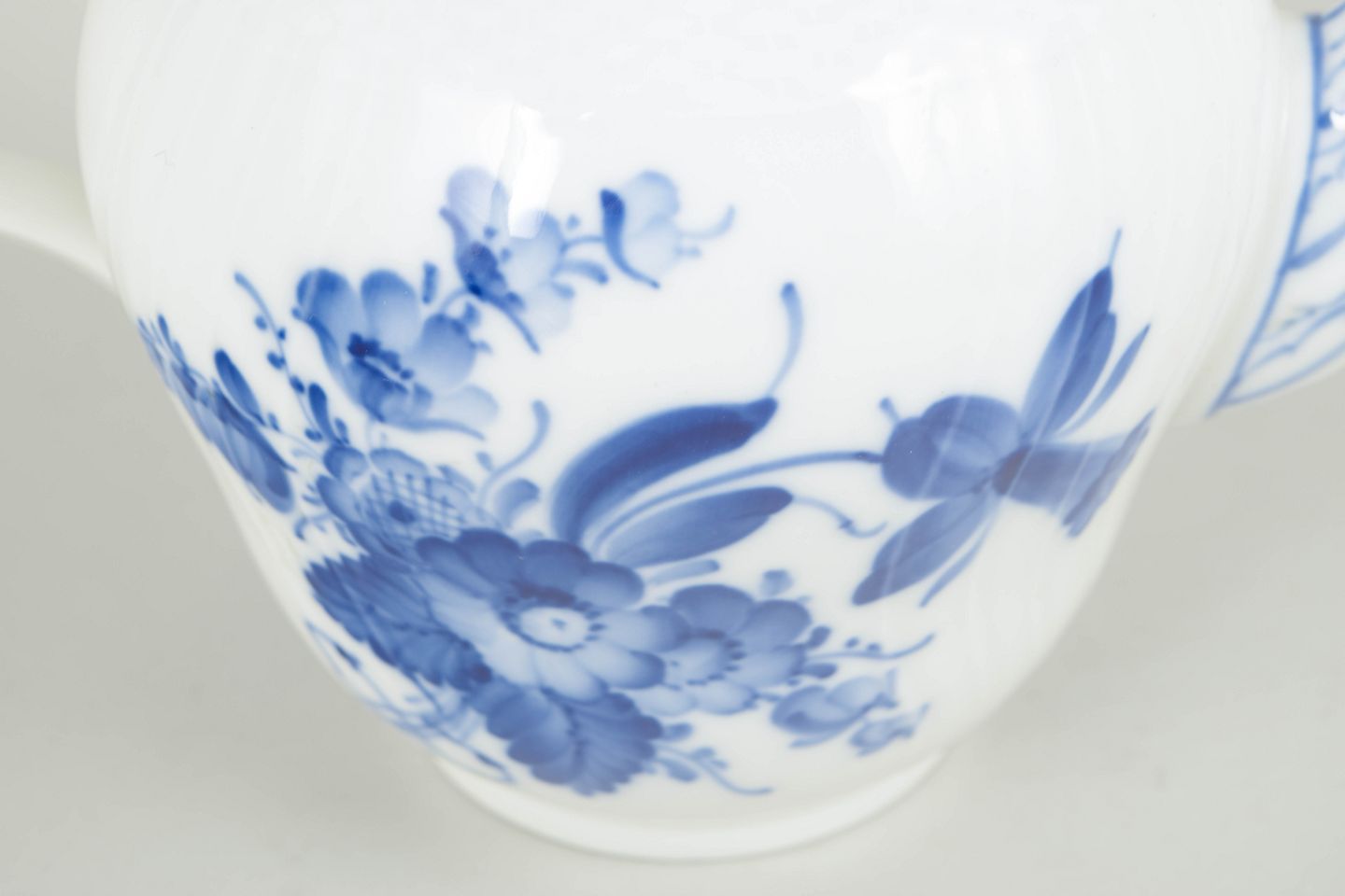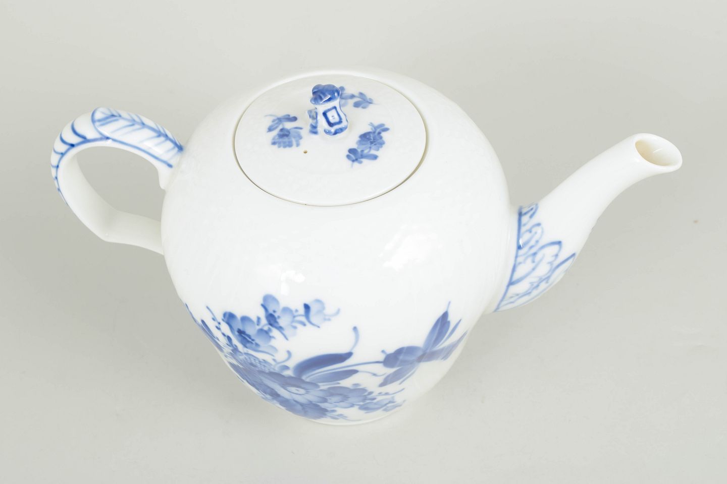 Royal Copenhagen, Blå Blomst Svejset tekande.Tekande i porcelæn med låg og hank, dekoreret med håndmalet blå blomsterdekoration i relief.