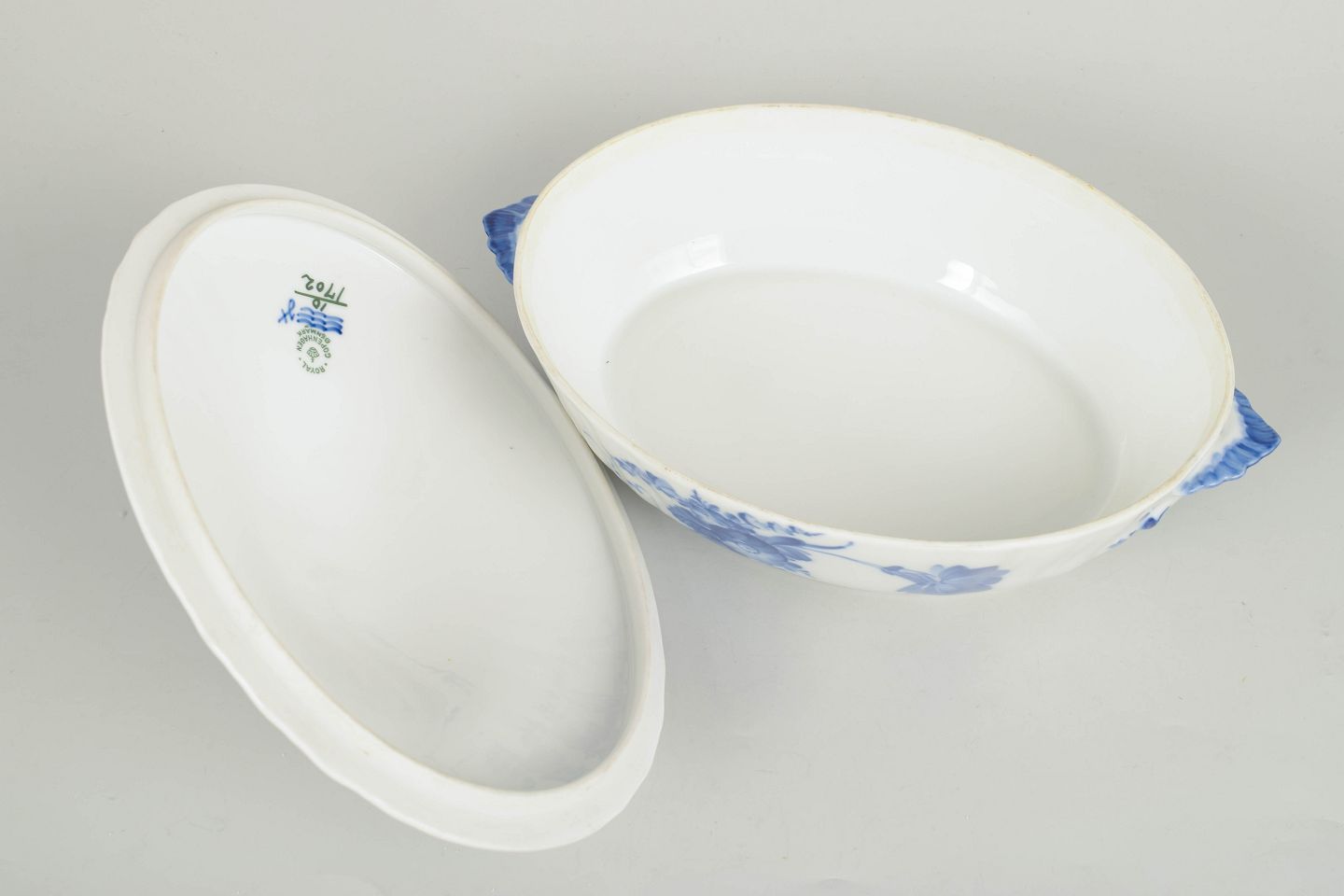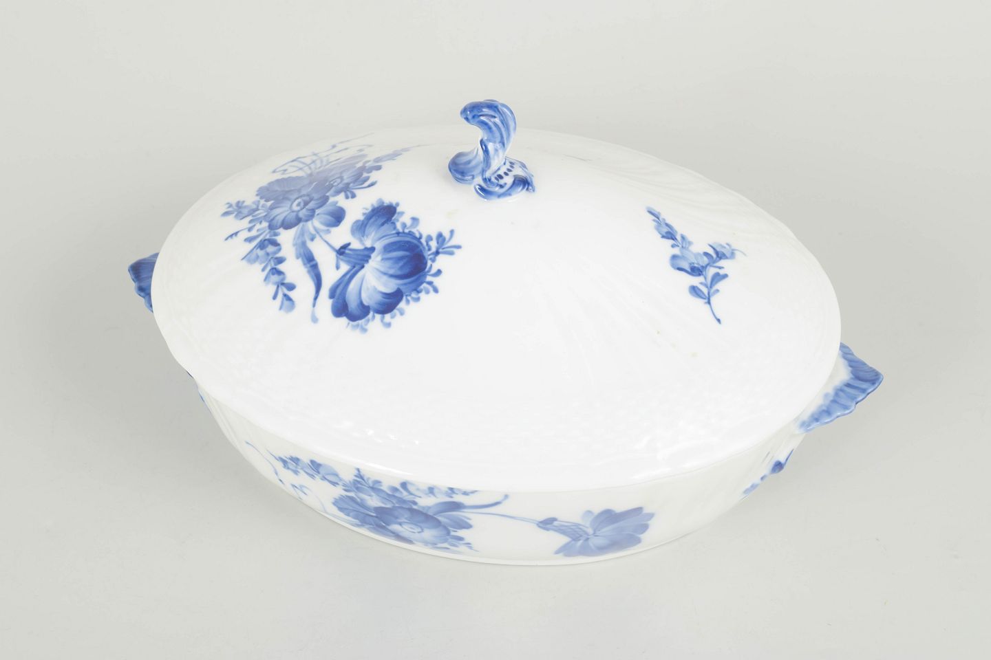 Royal Copenhagen, Blå Blomst Svejset oval terrin med låg.Oval terrin i porcelæn med låg og sidehanke, dekoreret med håndmalet blå blomsterdekoration i relief.