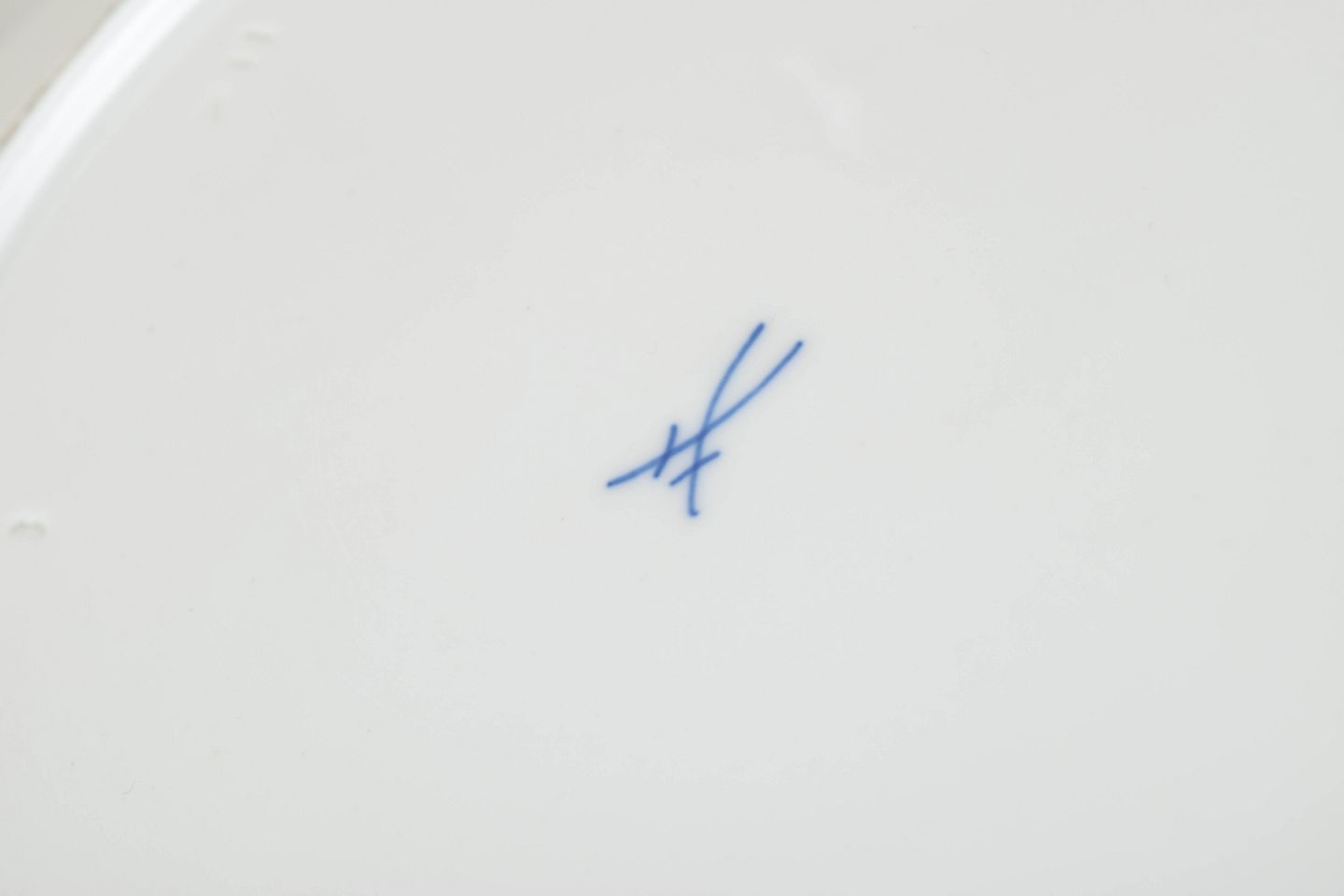 Meissen løgmønster, sæt af to middagstallerkener.To middagstallerkener i porcelæn med håndmalet blå dekoration i det klassiske løgmønster. 1. sortering, fabriksstemplet med Meissens krydssværd. Diameter 24 cm.
