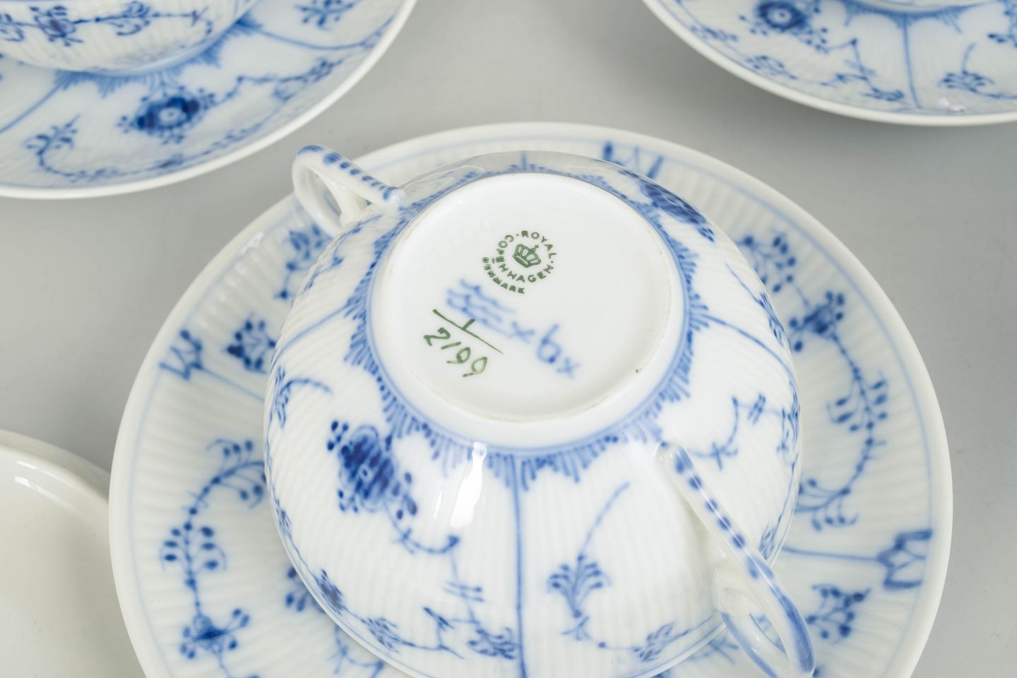 Royal Copenhagen blev grundlagt i 1775 og er en af Danmarks mest betydningsfulde porcelænsfabrikker. Fabrikken er særligt kendt for sine håndmalede dekorationer i underglasur blå, hvor Musselmalet Riflet er blandt de ældste og mest ikoniske stel. Hvert stykke er individuelt dekoreret af porcelænsmalere, hvilket gør hvert objekt unikt.