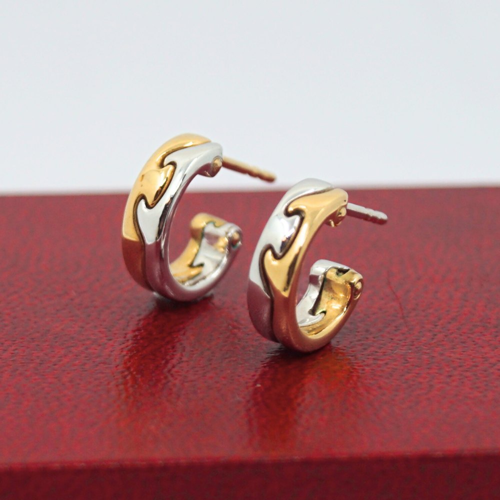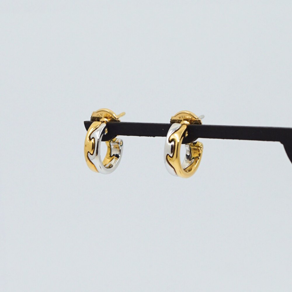 Georg Jensen guld smykke.Nina Koppel for Georg Jensen; Par fusion øreringe af 18 kt. guld og hvidguld.
