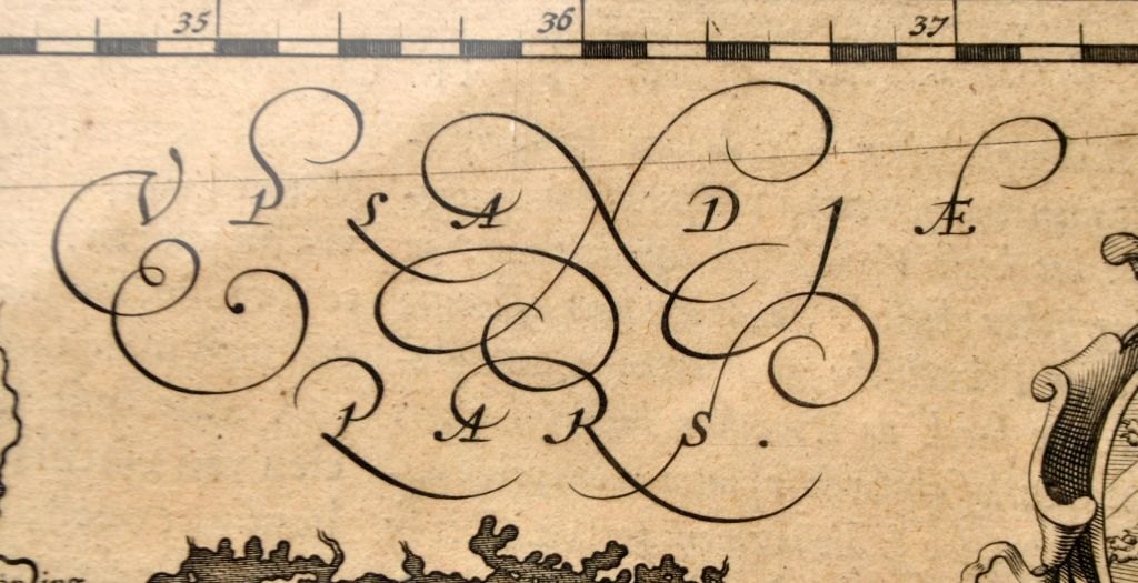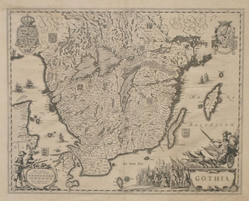 Van den Keere, Pieter (1571 – c. 1646) Holland: Kort over Sydsverige. ca. 1610. Kobberstik. Usigneret. Latinsk udgave. H: 41,5 cm. B: 53 cm.Indrammet: H: 55 cm. B: 65 cm.