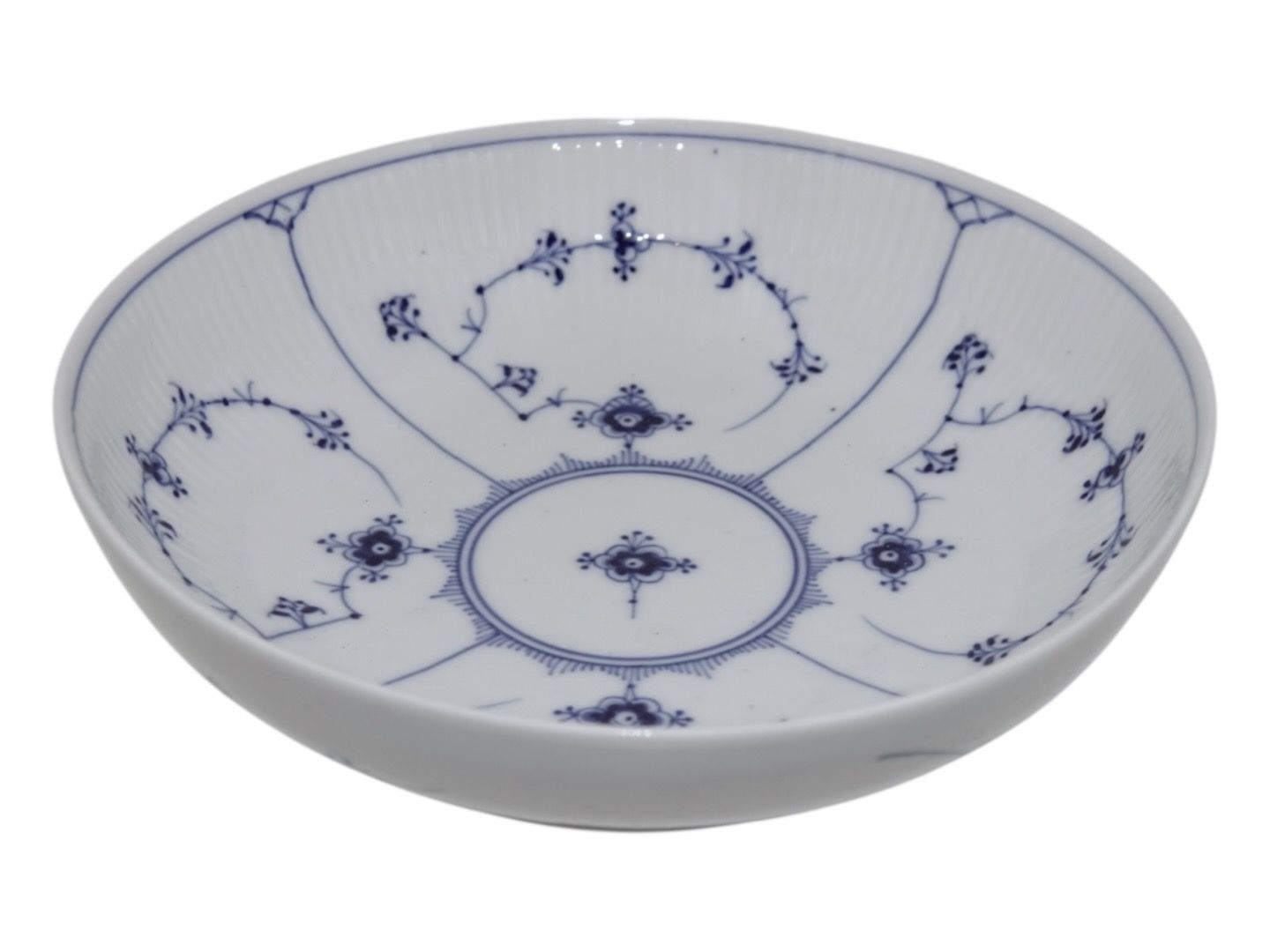 Royal Copenhagen Musselmalet Riflet, rund kartoffelskål.Af fabriksmærket ses det, at denne er produceret i mellem 1898 og 1923.