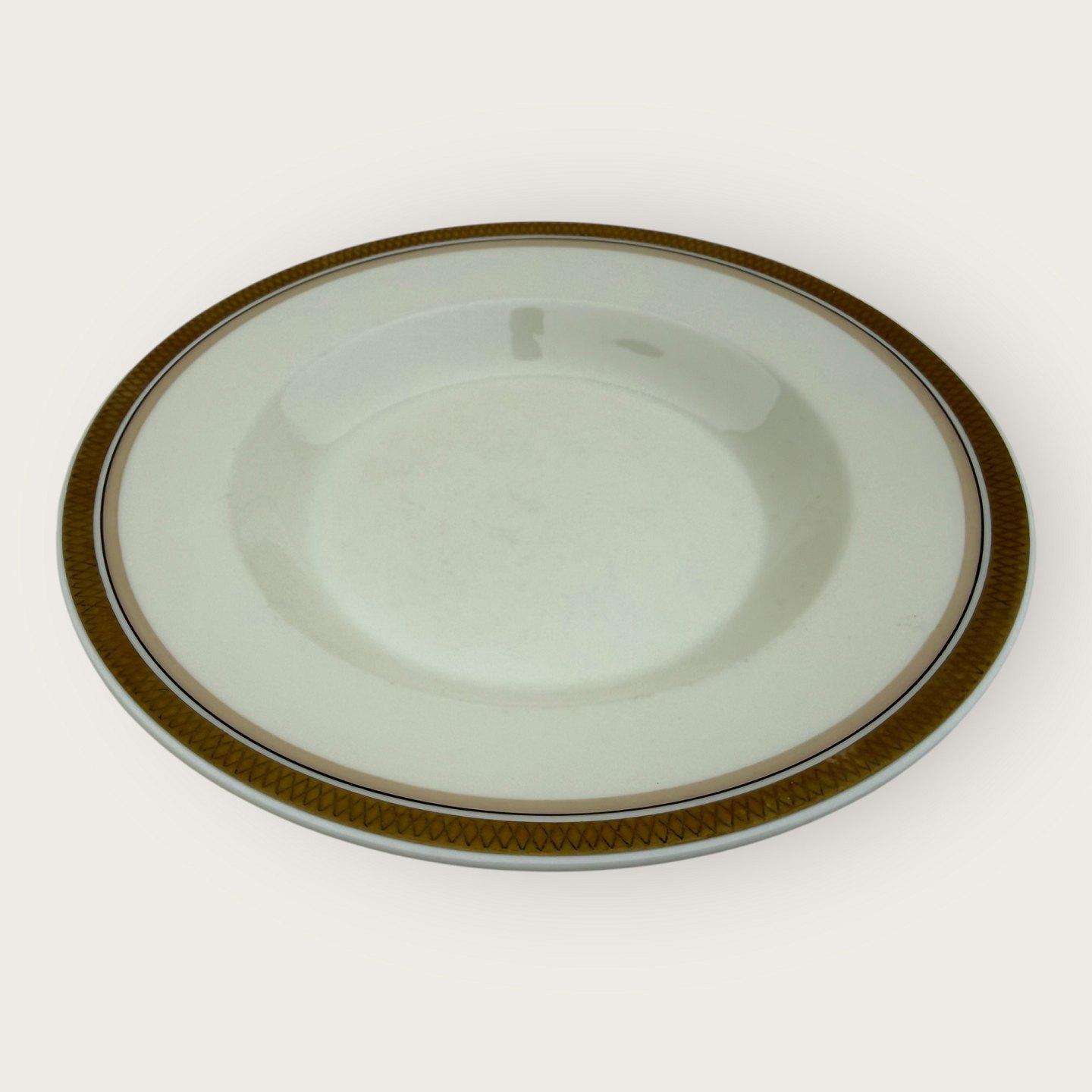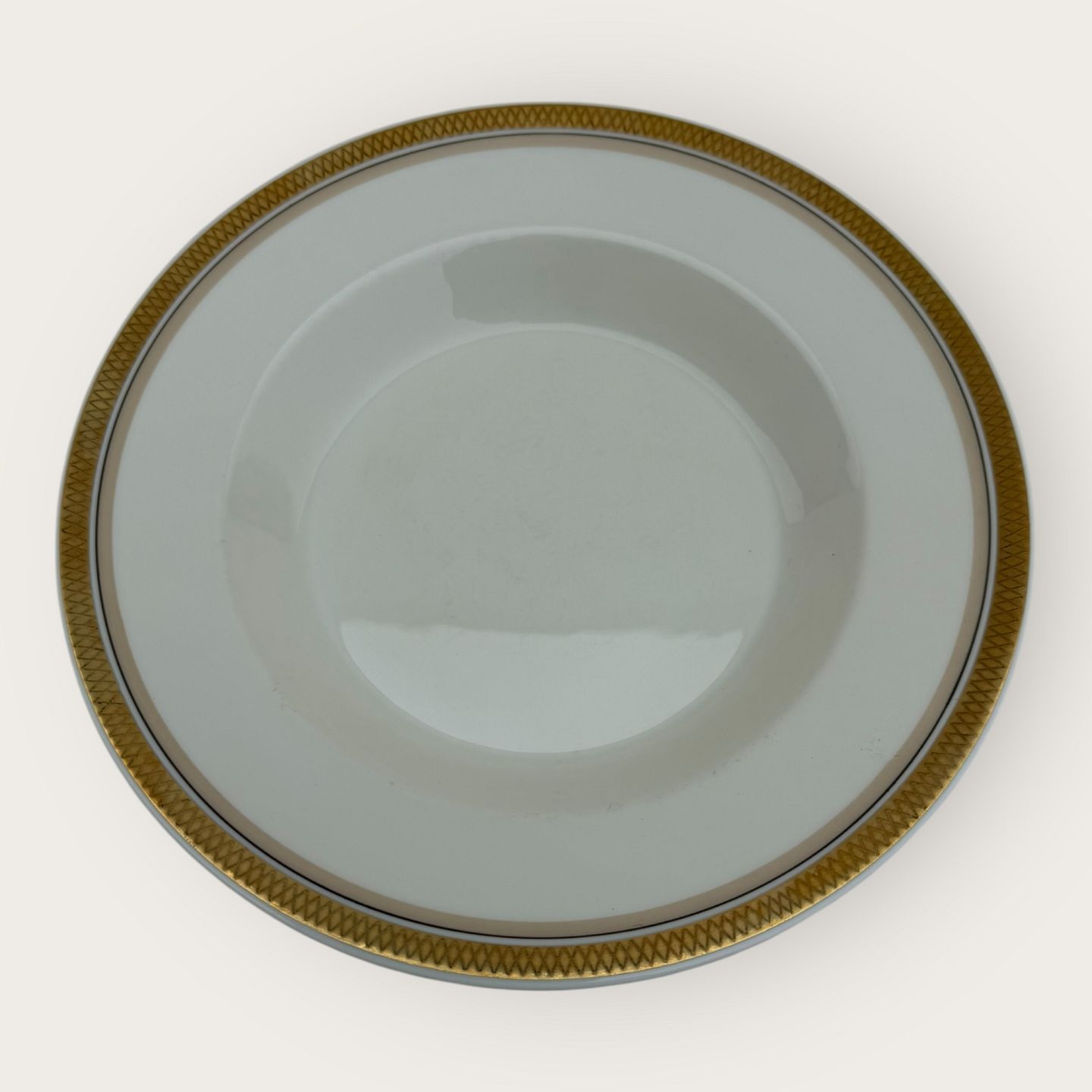 Royal Copenhagen, Liselund uden dekoration, # 1137/9587 (også kendt som 1173) , stor dyb tallerken, 24,5cm i diameter, 1. sortering *fremstår med lidt misfarvning på guldkanterne ellers pæn stand*Lager: 6