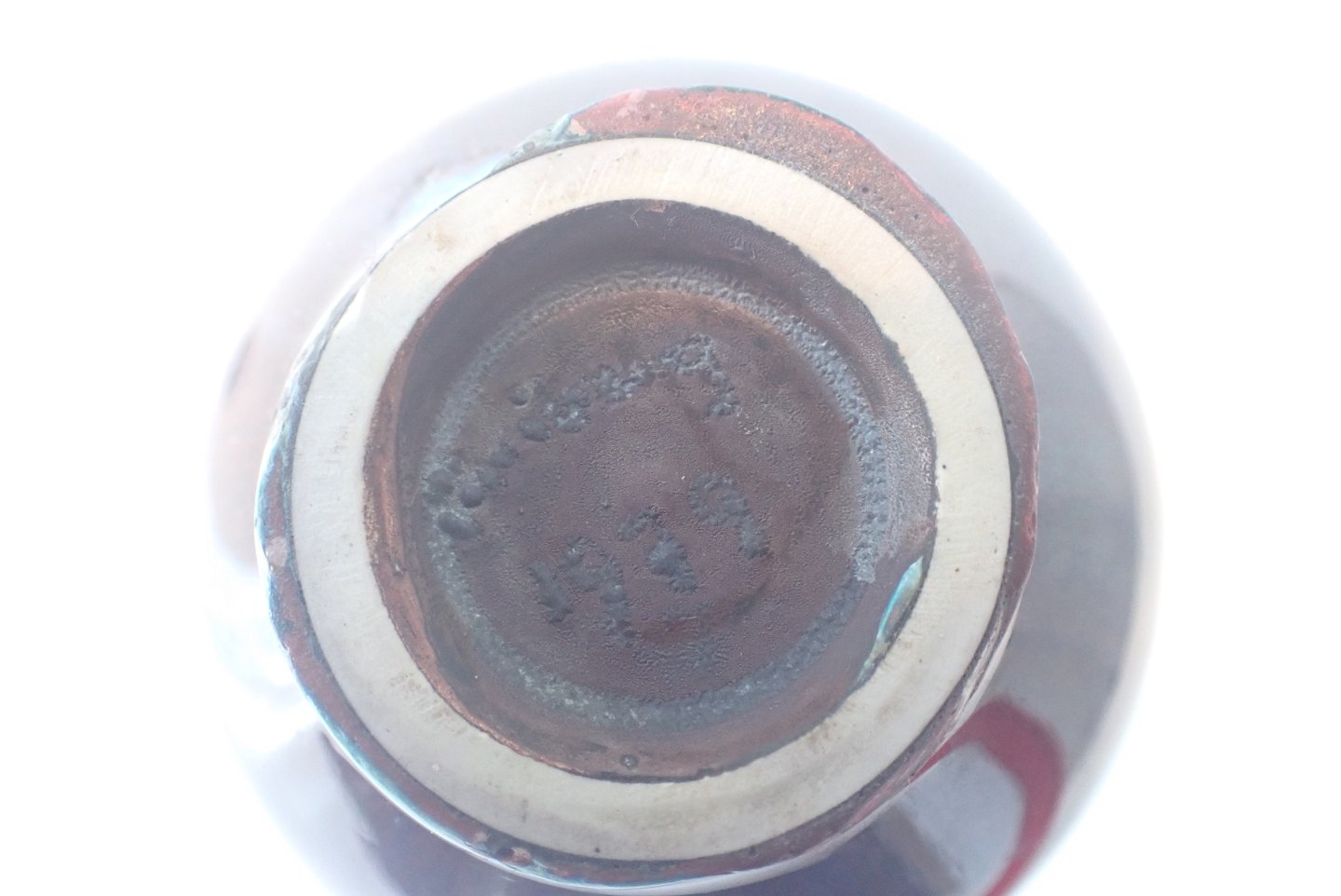 Berndt Friberg (1899 - 1981) - Lille, dråbeformet vase i stentøj med blank grøn/brun/blå spættet glasur. Gustavsberg. Stemblet Friberg 79. Højde: 11,7 cm. Bredde: ca. 7 cm. I fin stand men med oprindelig sleben bund. Udstiller